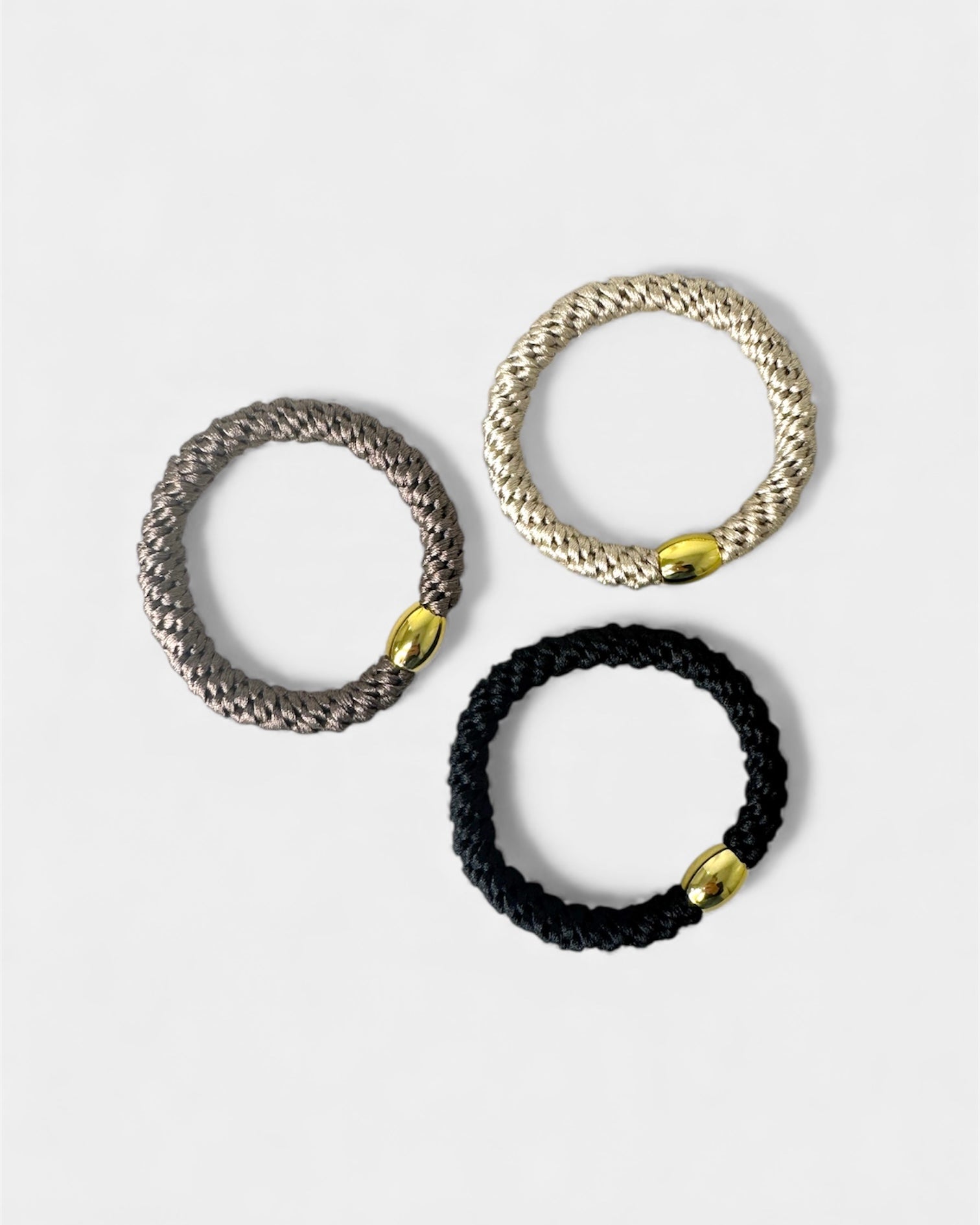 Våra beige hårsnoddar är mjuka, stilrena och lätta att kombinera med allt.