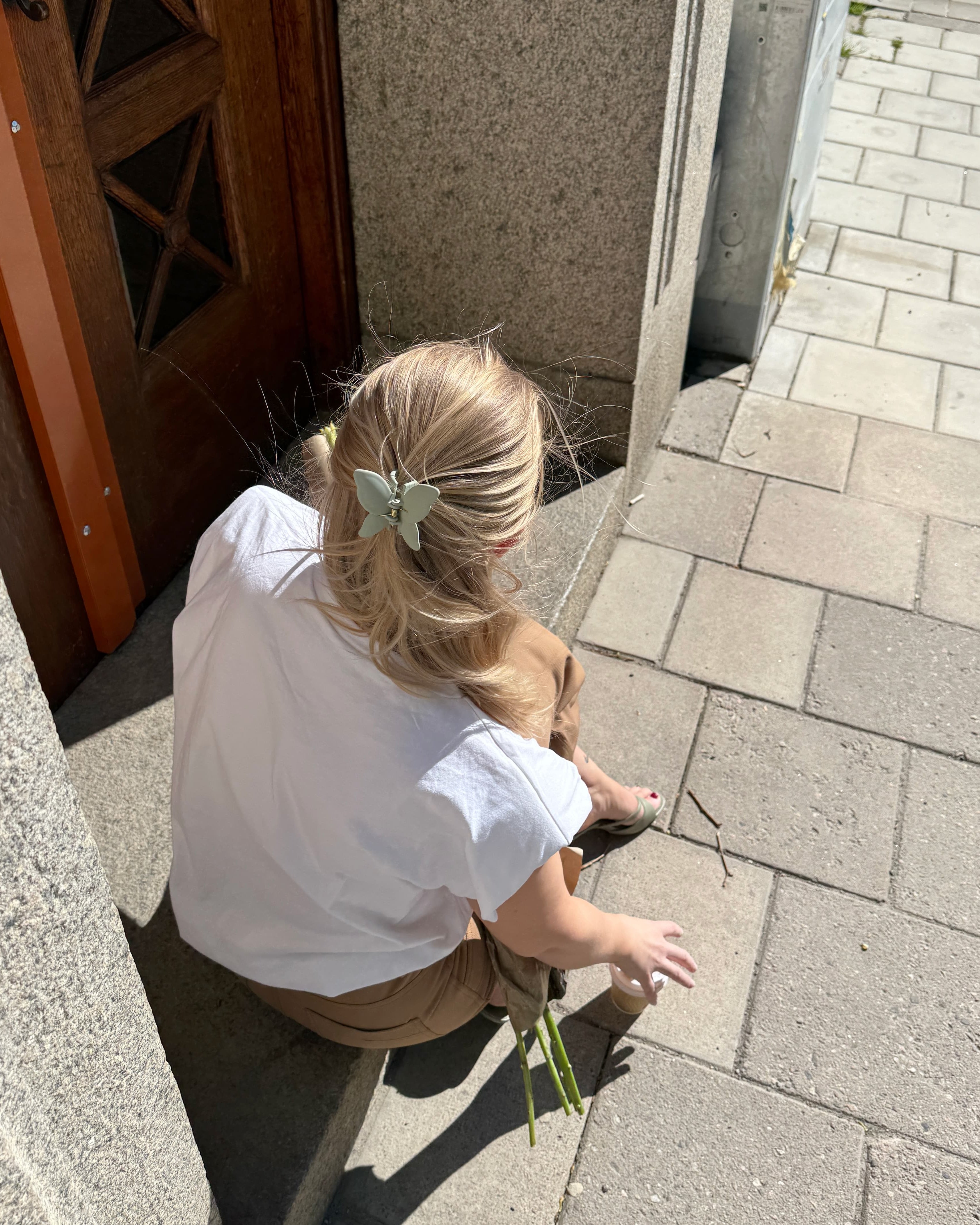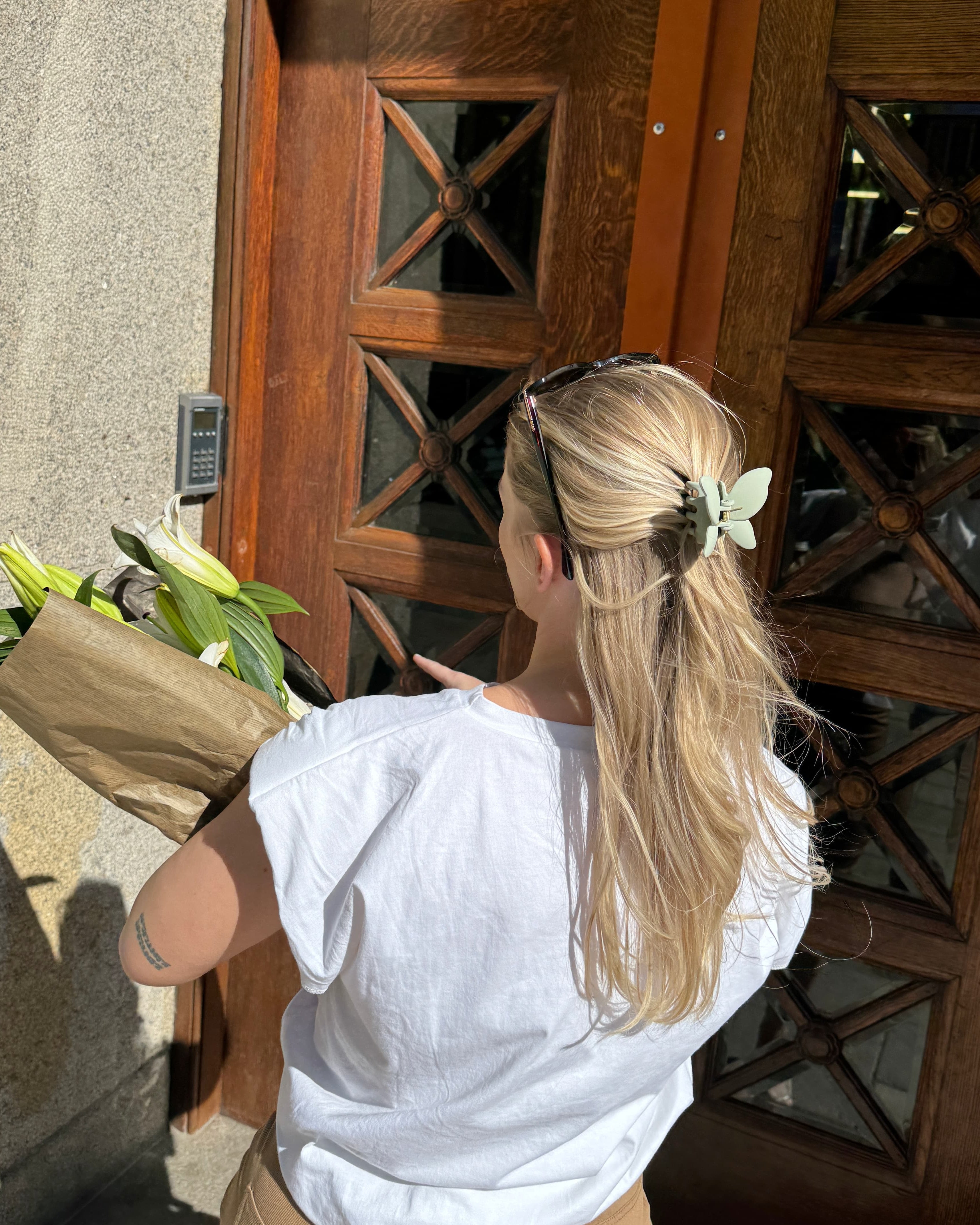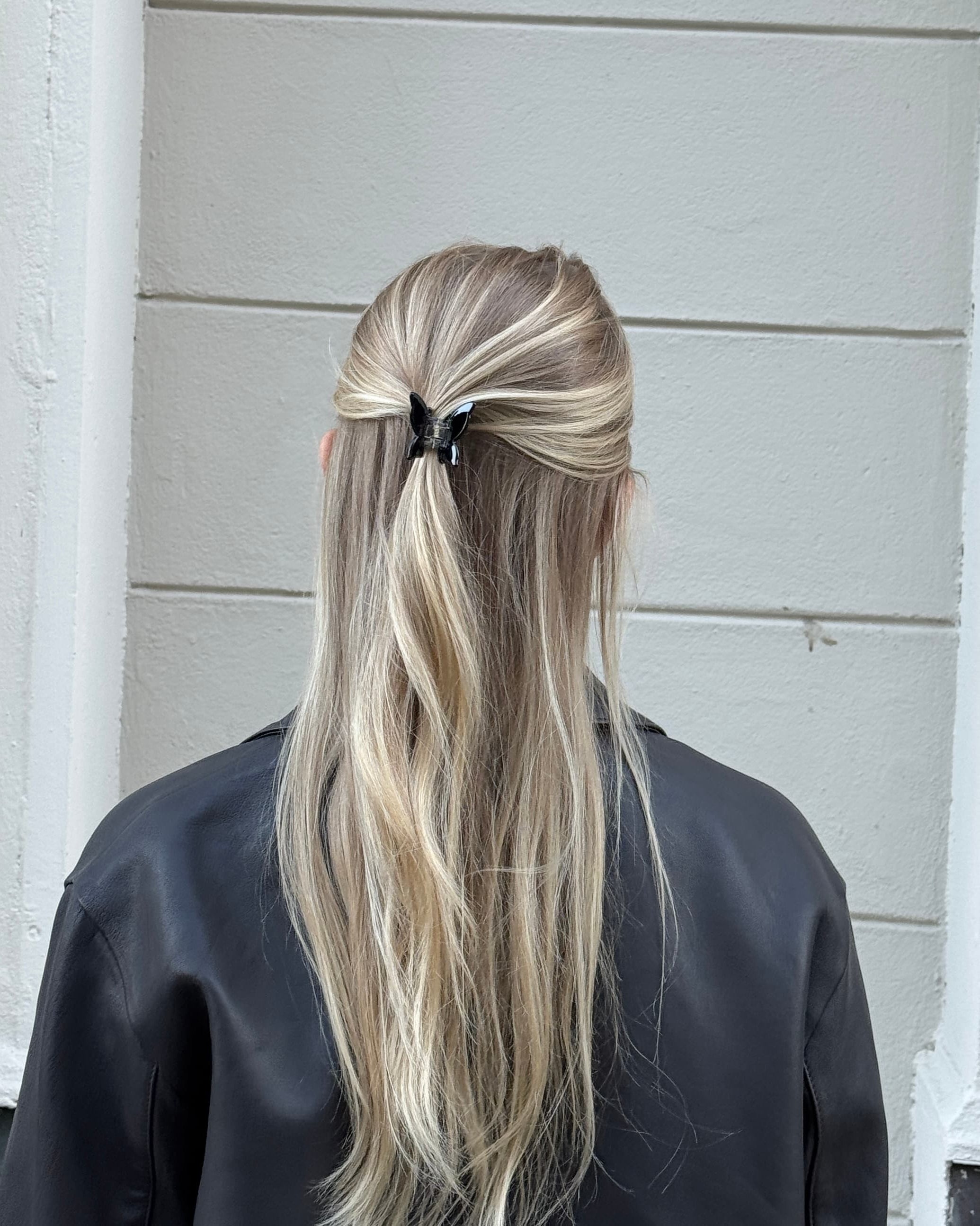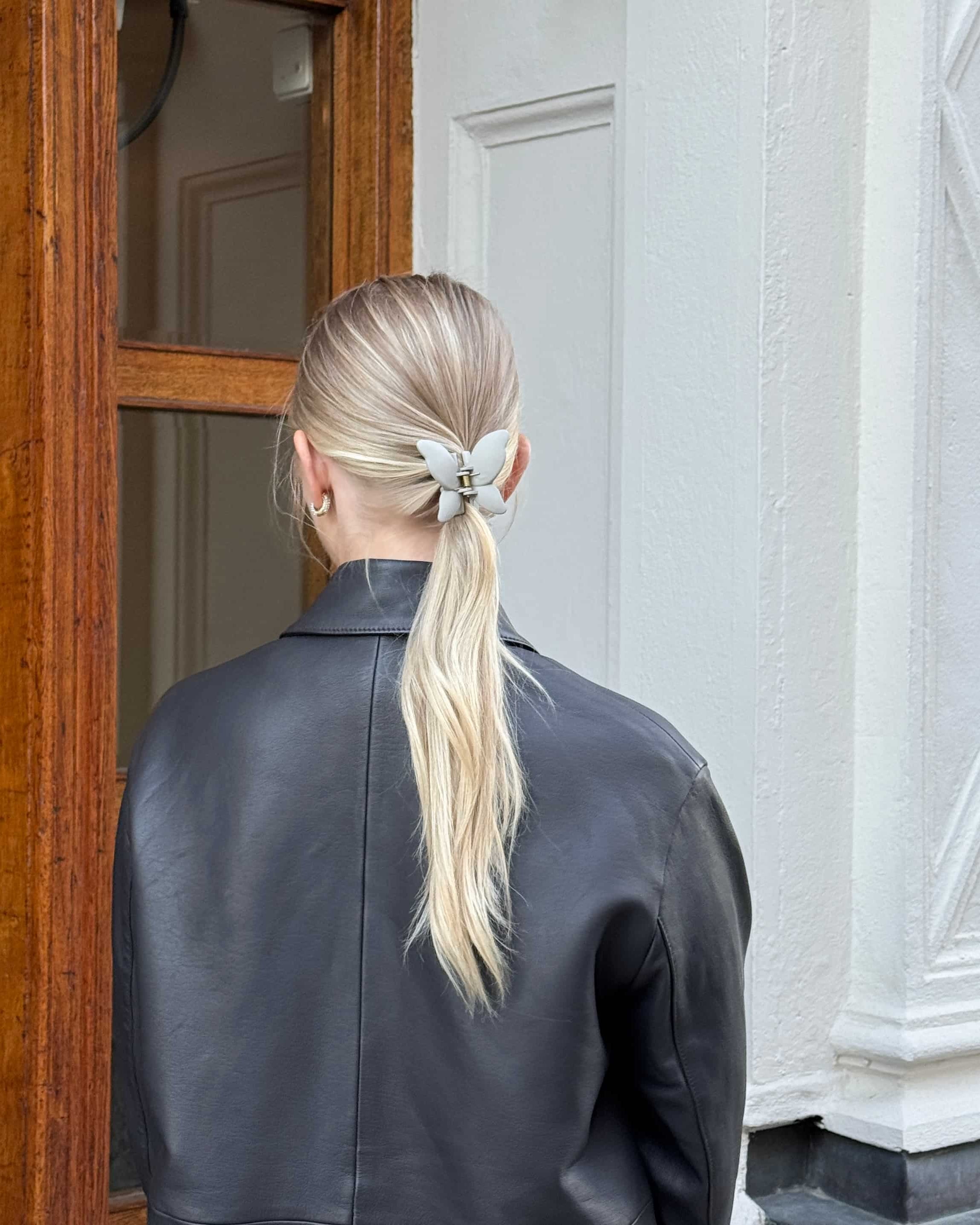 Fjärilshårklämmor eller butterfly clips har gjort en tydlig comeback de senaste åren, men vår klämma är skapad för att kännas tidlös. Vi ville ta vara på det lekfulla i formen, men göra det på ett sätt som känns mer stilrent än trendigt.