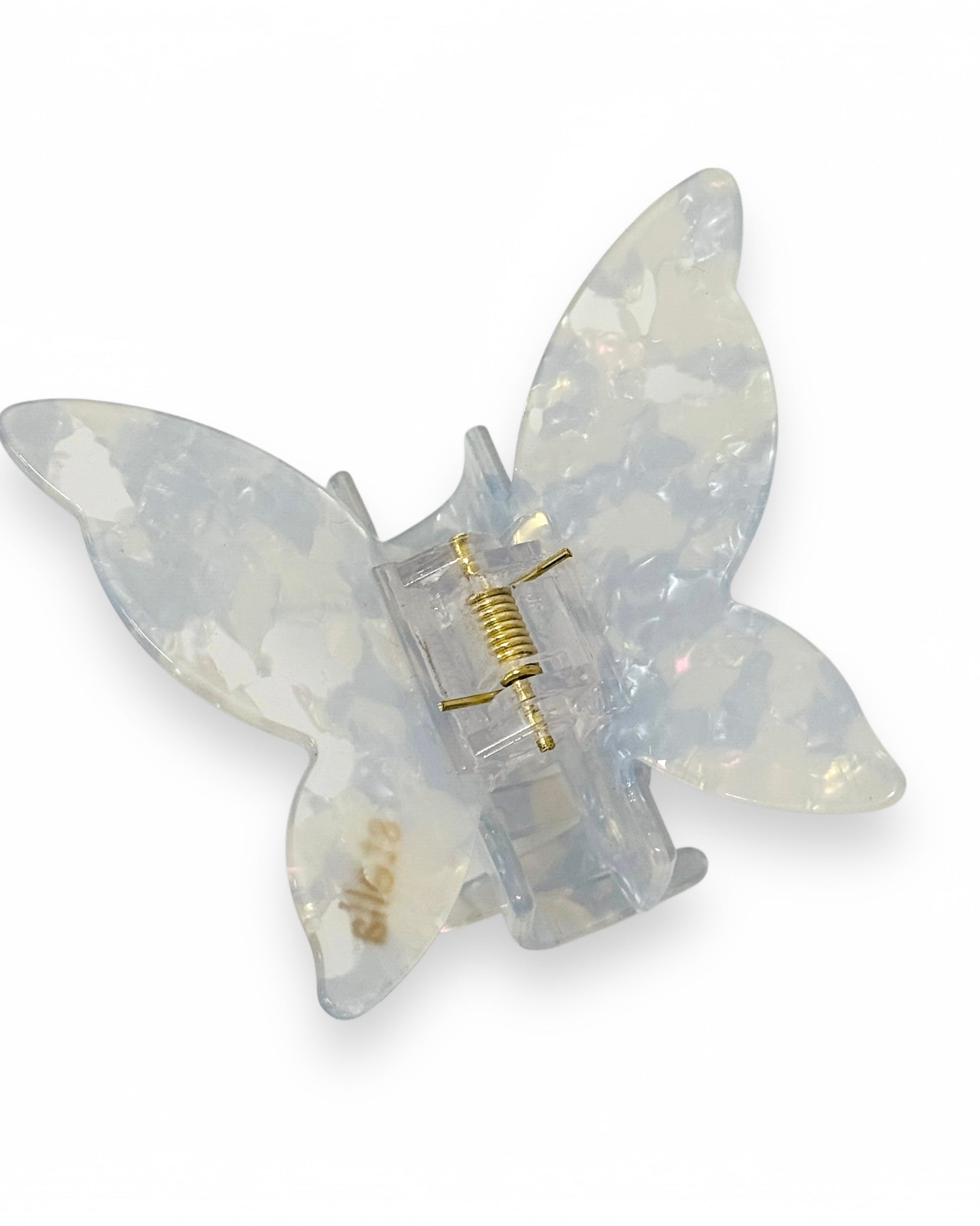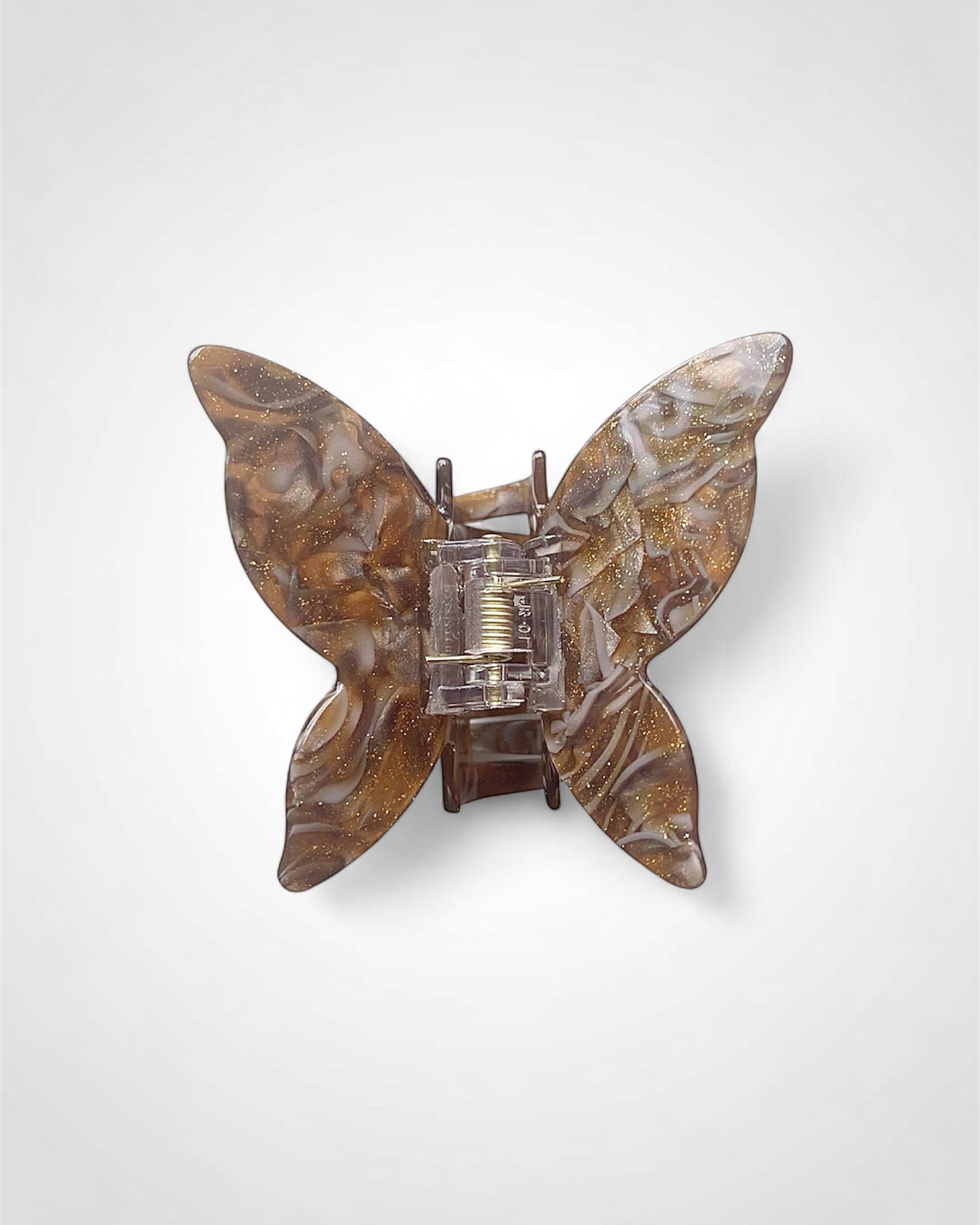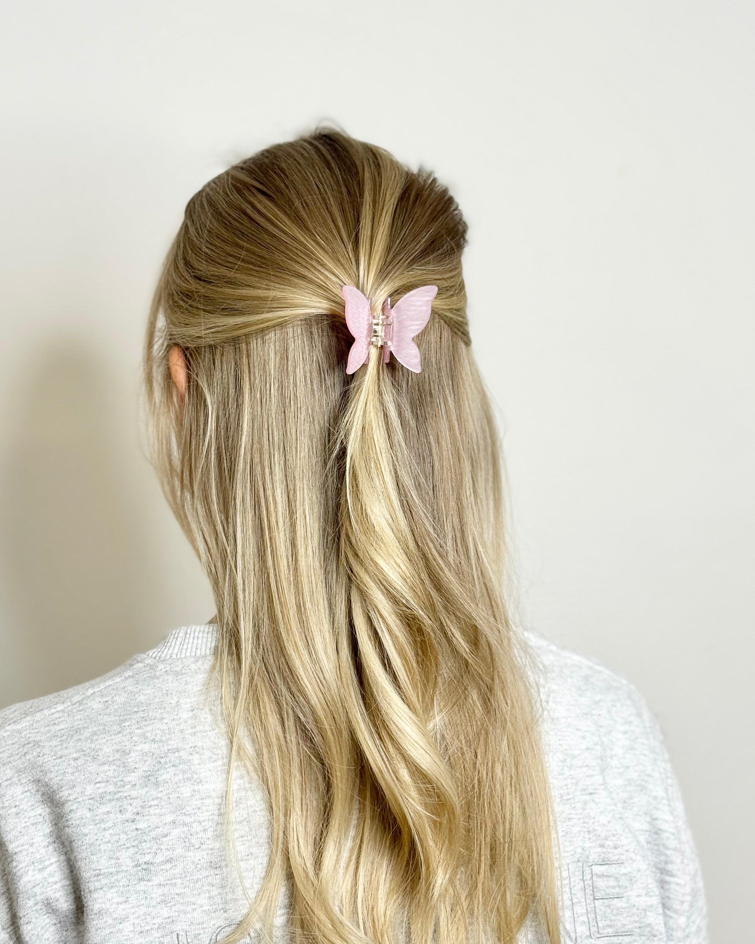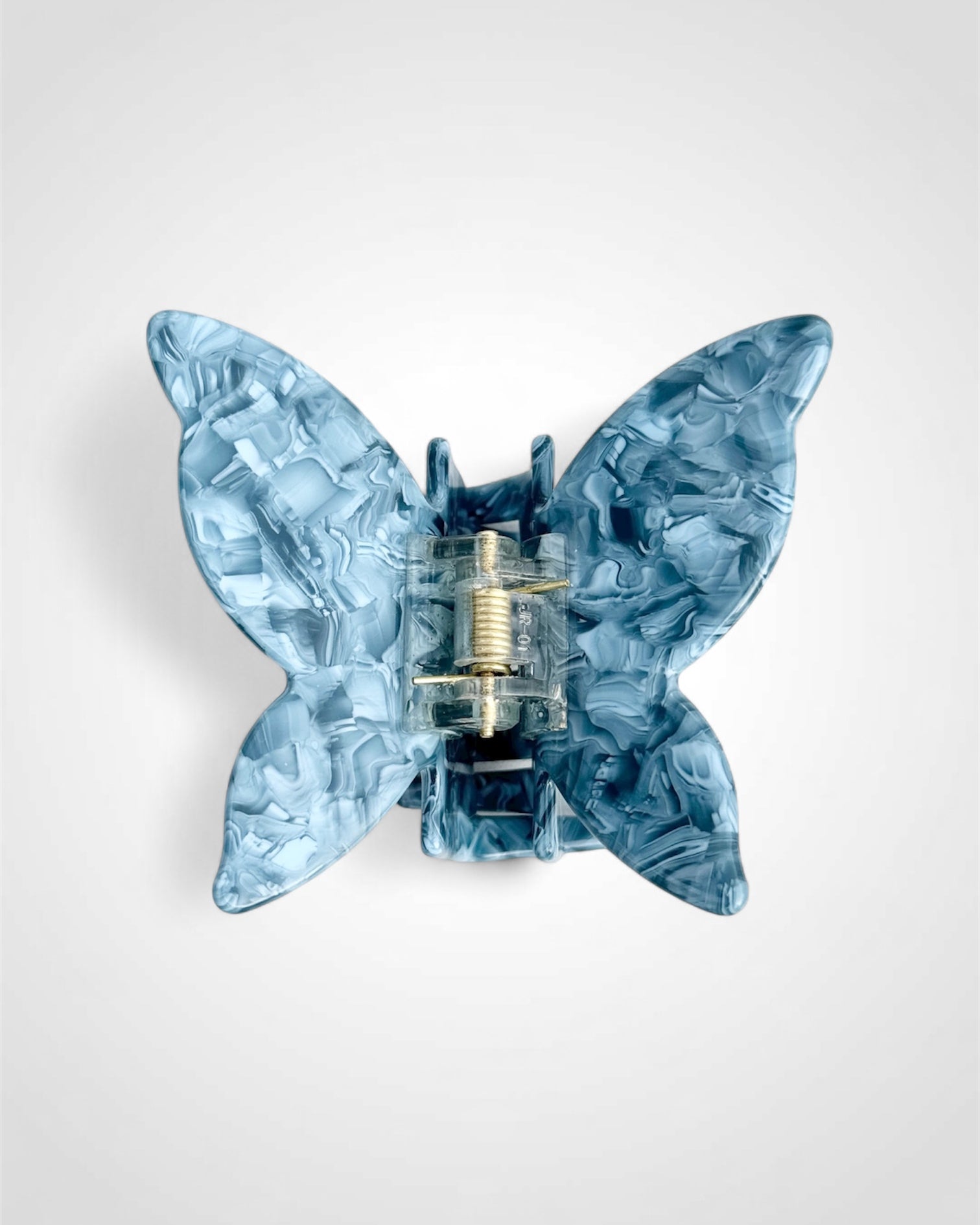 Small Butterfly Clip är vår minsta variant. Den är ca 4–5 cm lång och passar för att hålla undan mindre slingor, sätta upp luggen eller skapa små detaljer i håruppsättningen. Också en favorit hos barn.