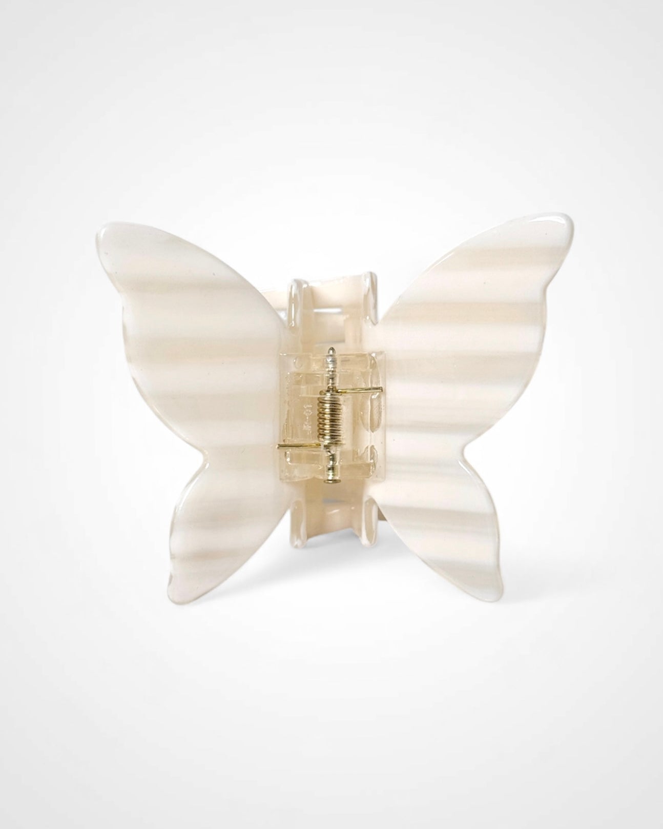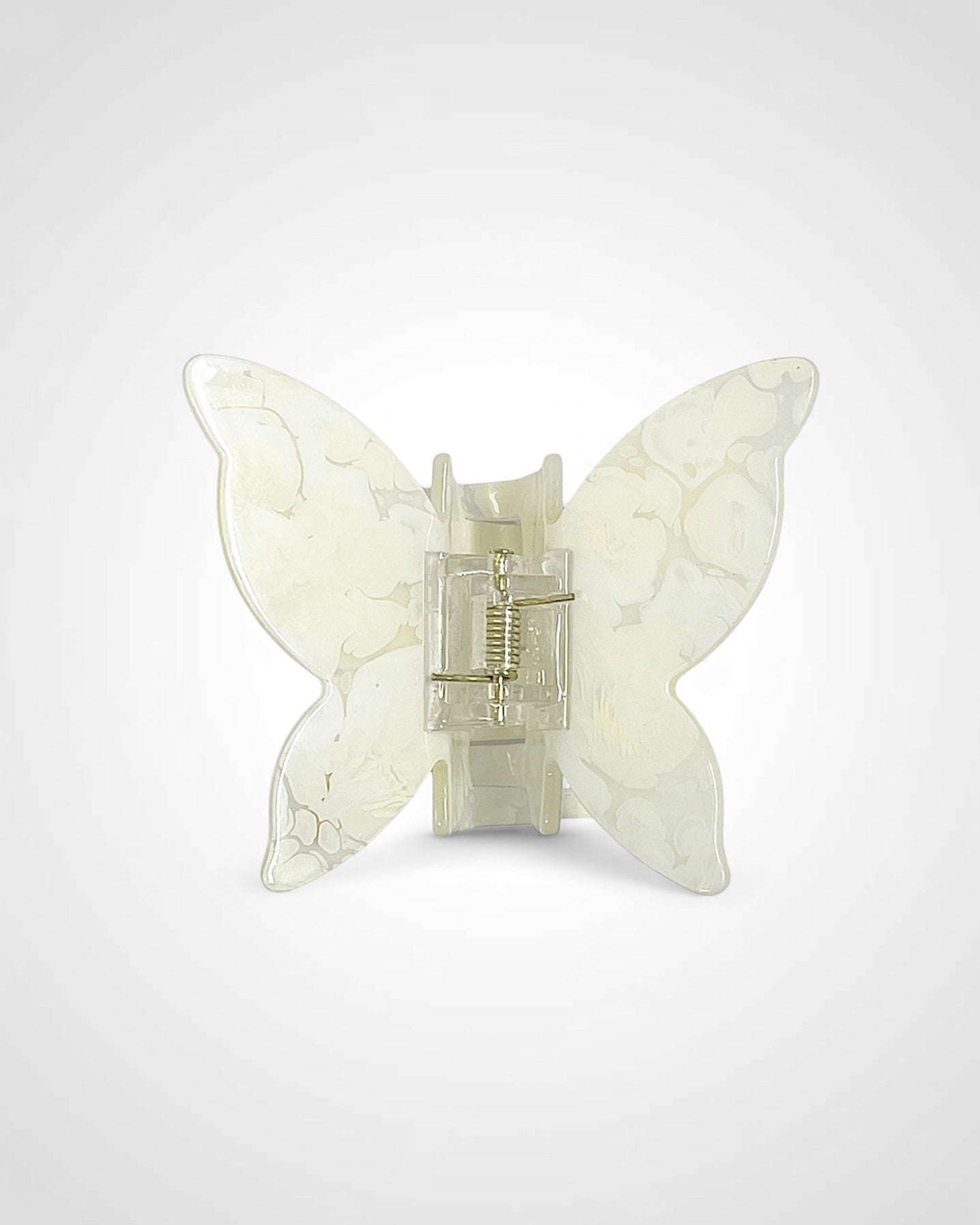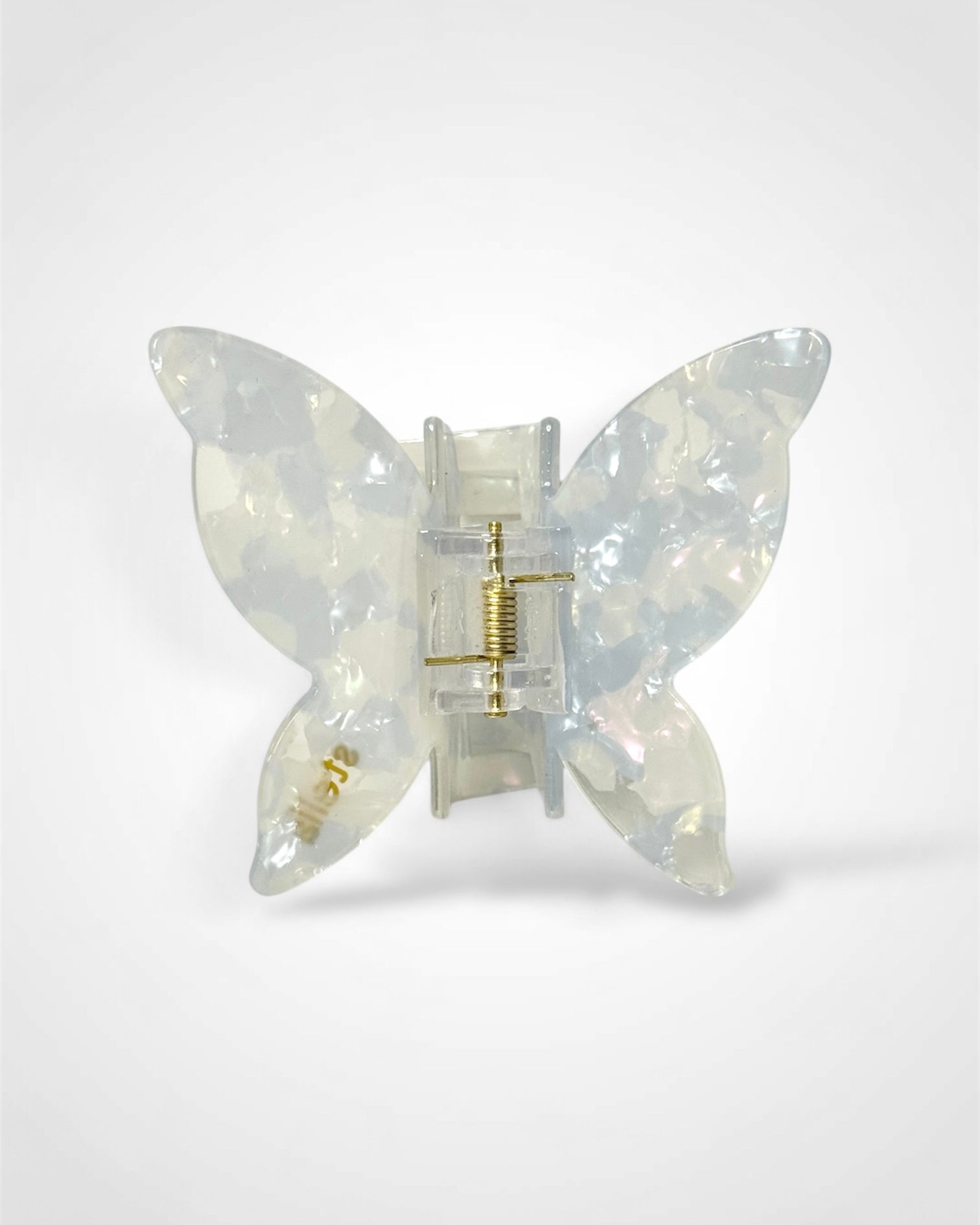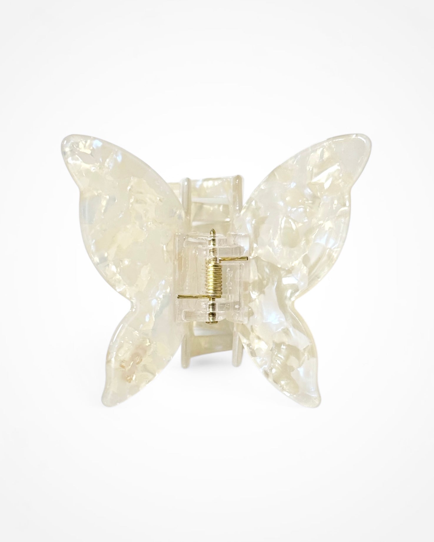 Small Butterfly Clip är vår minsta variant. Den är ca 4–5 cm lång och passar för att hålla undan mindre slingor, sätta upp luggen eller skapa små detaljer i håruppsättningen. Också en favorit hos barn.