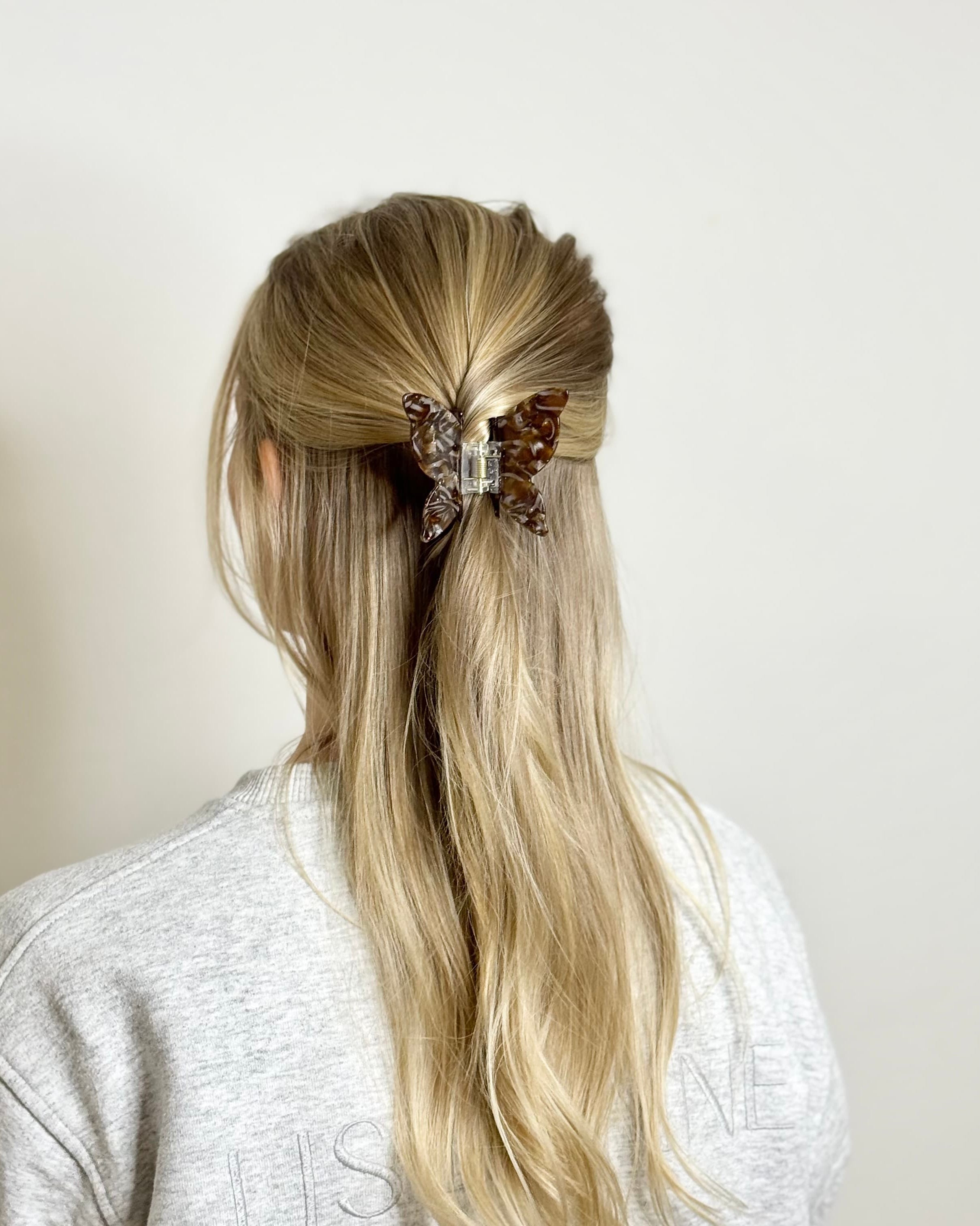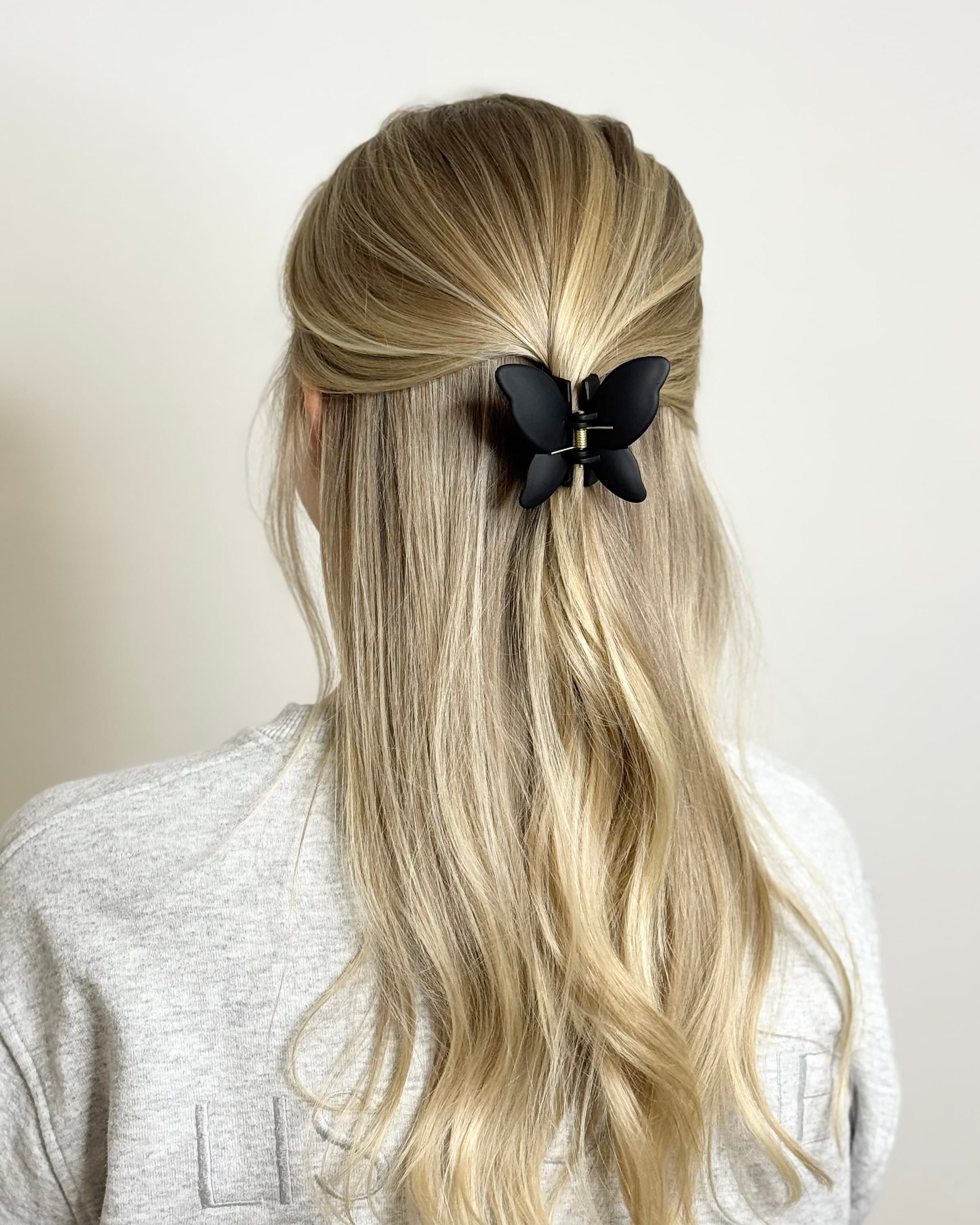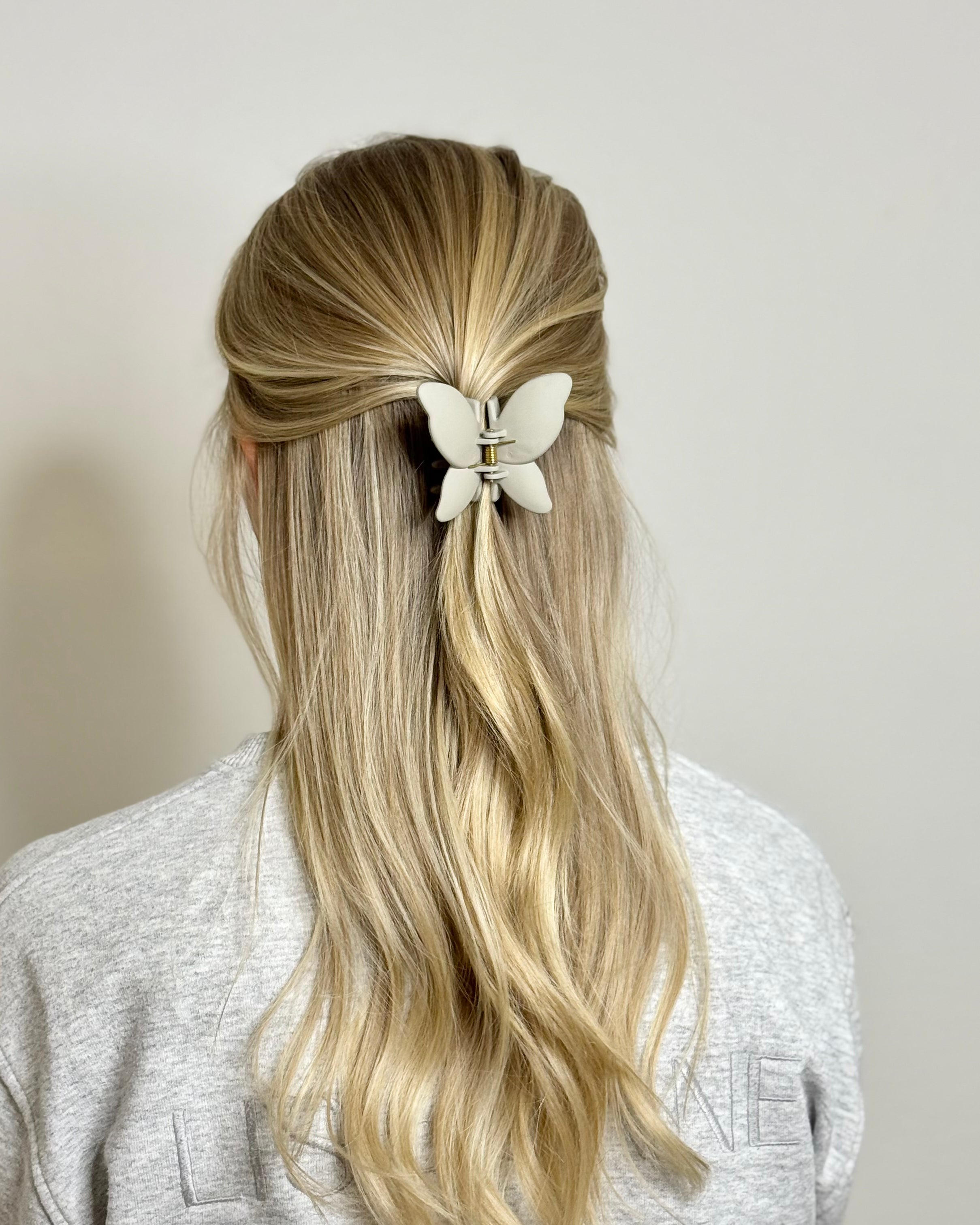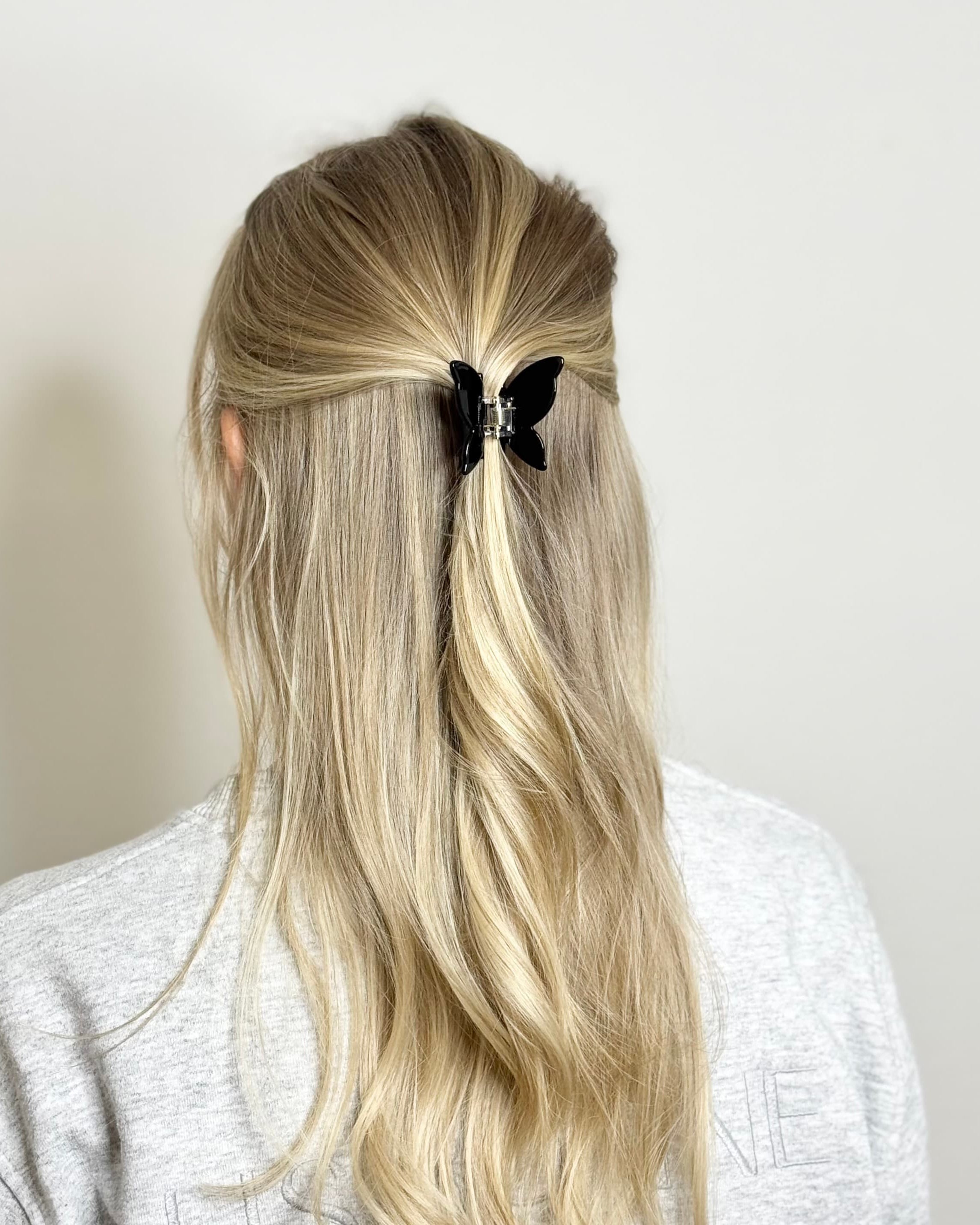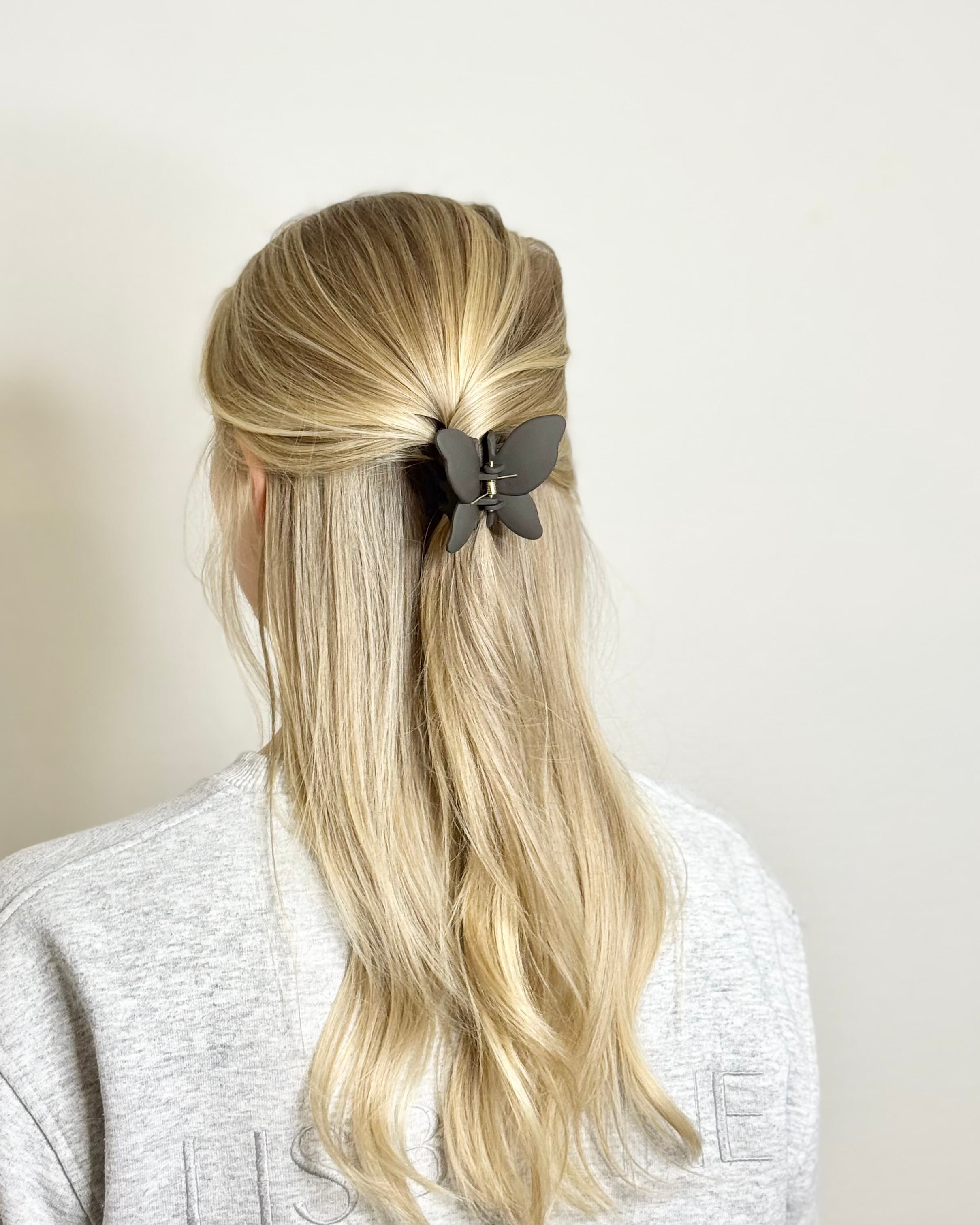 Medium Butterfly Clip är en mångsidig storlek som fungerar i de flesta hårtyper. Den är perfekt för halvuppsättningar när du vill hålla håret borta från ansiktet på ett enkelt men fint sätt.