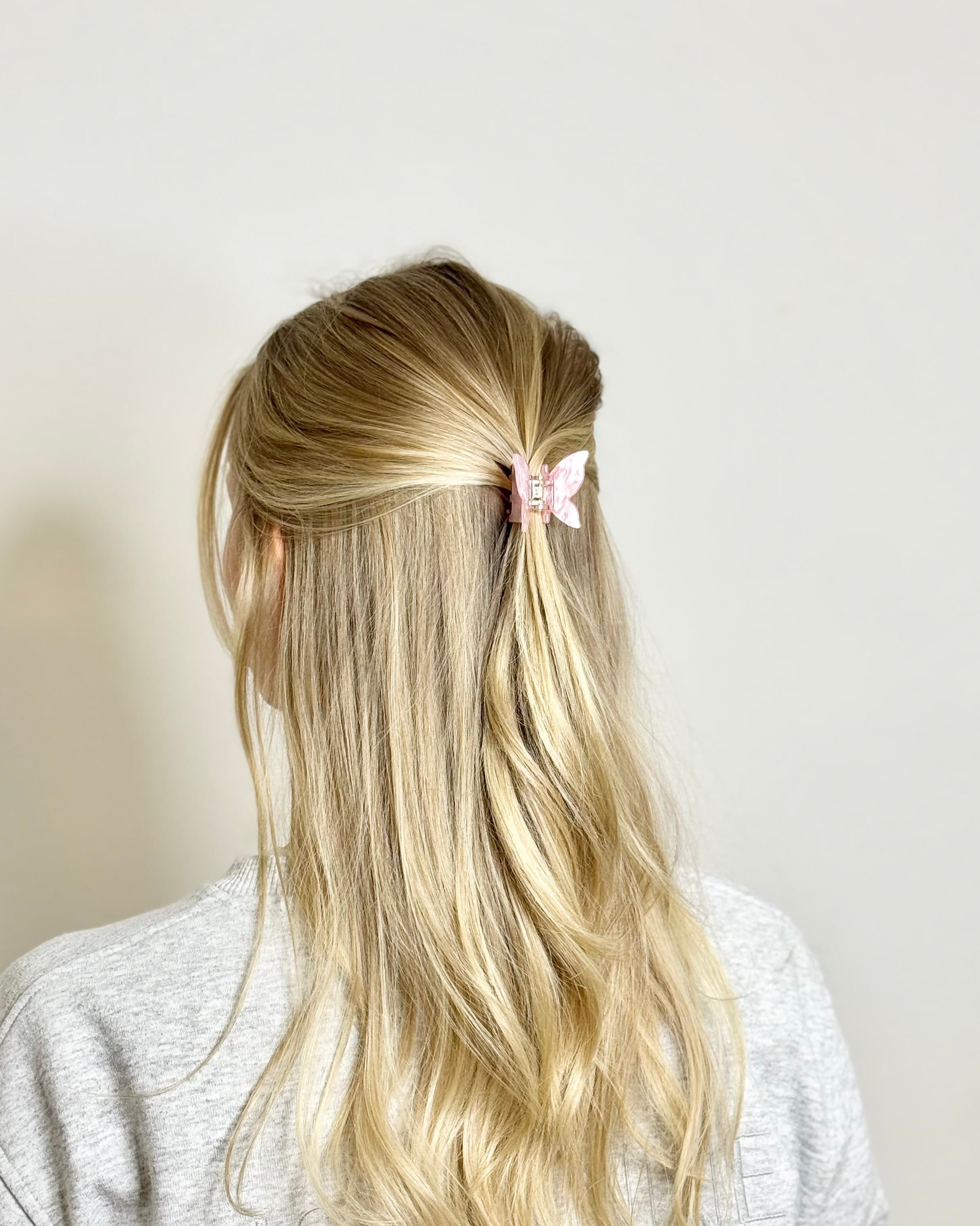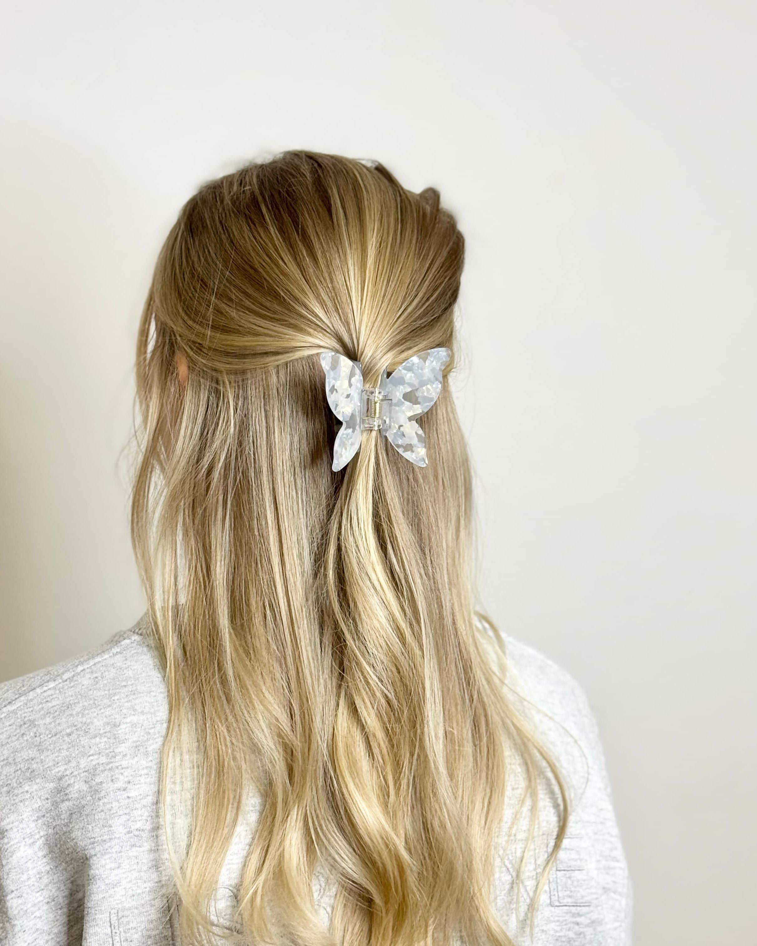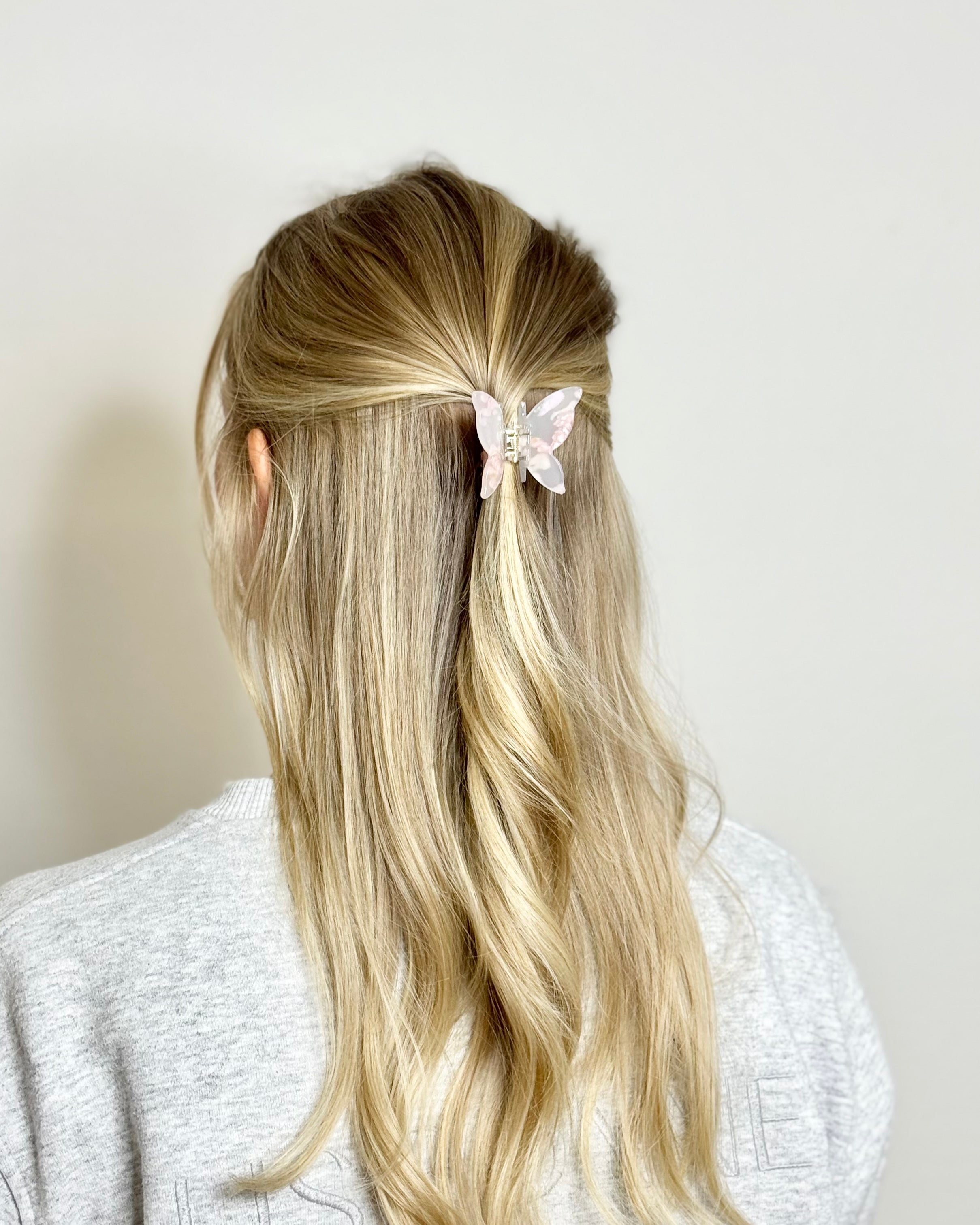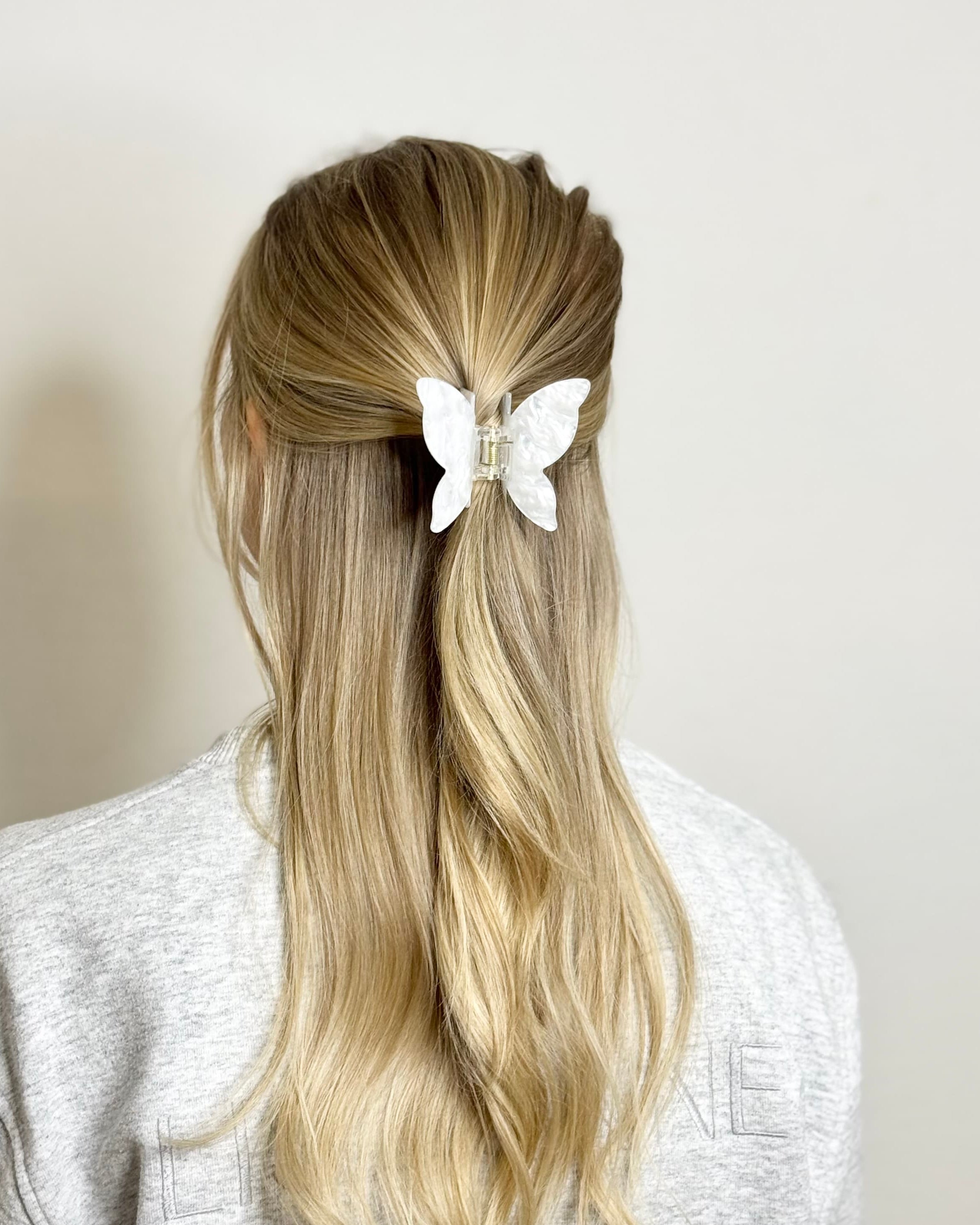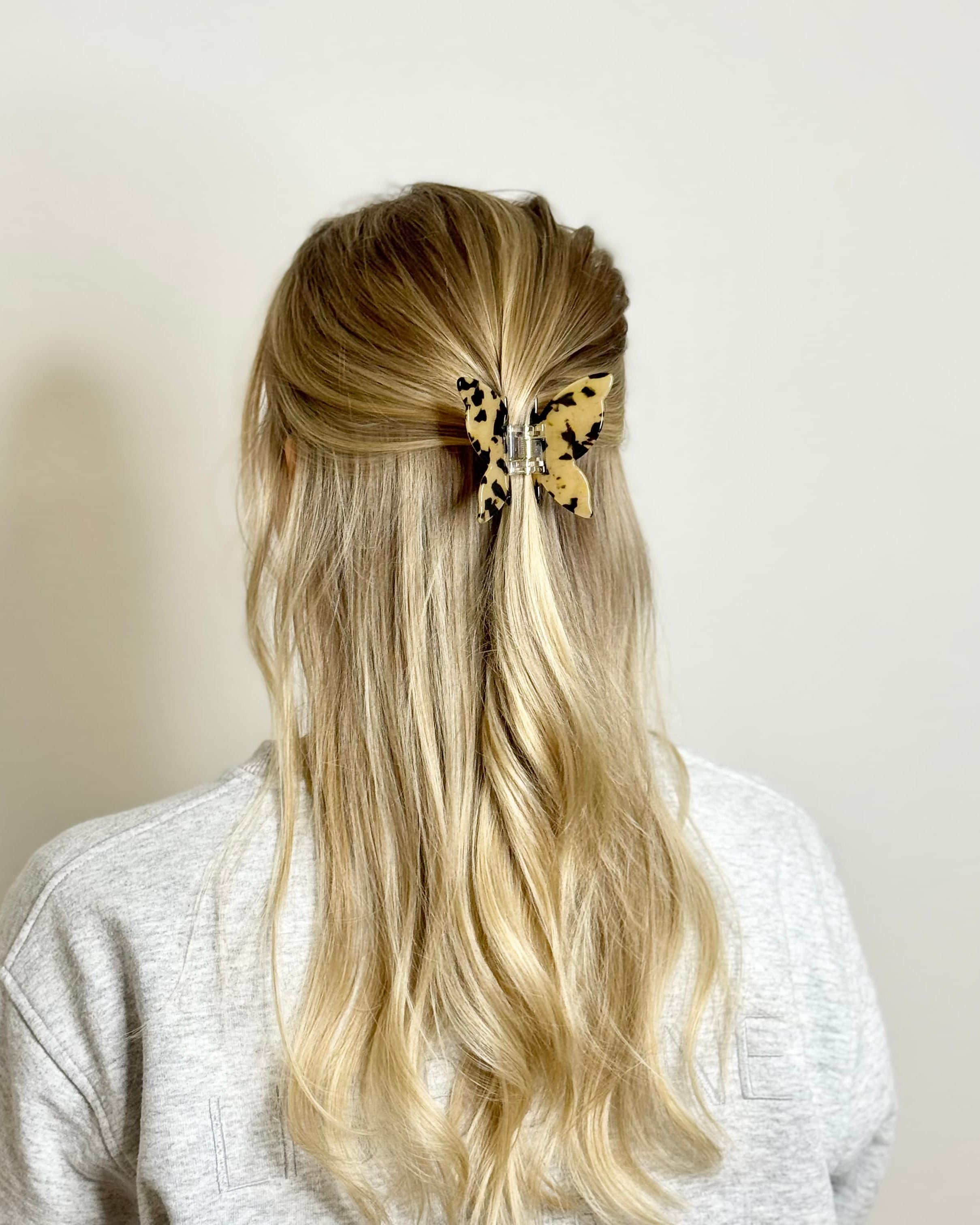 Medium Butterfly Clip är en mångsidig storlek som fungerar i de flesta hårtyper. Den är perfekt för halvuppsättningar när du vill hålla håret borta från ansiktet på ett enkelt men fint sätt.