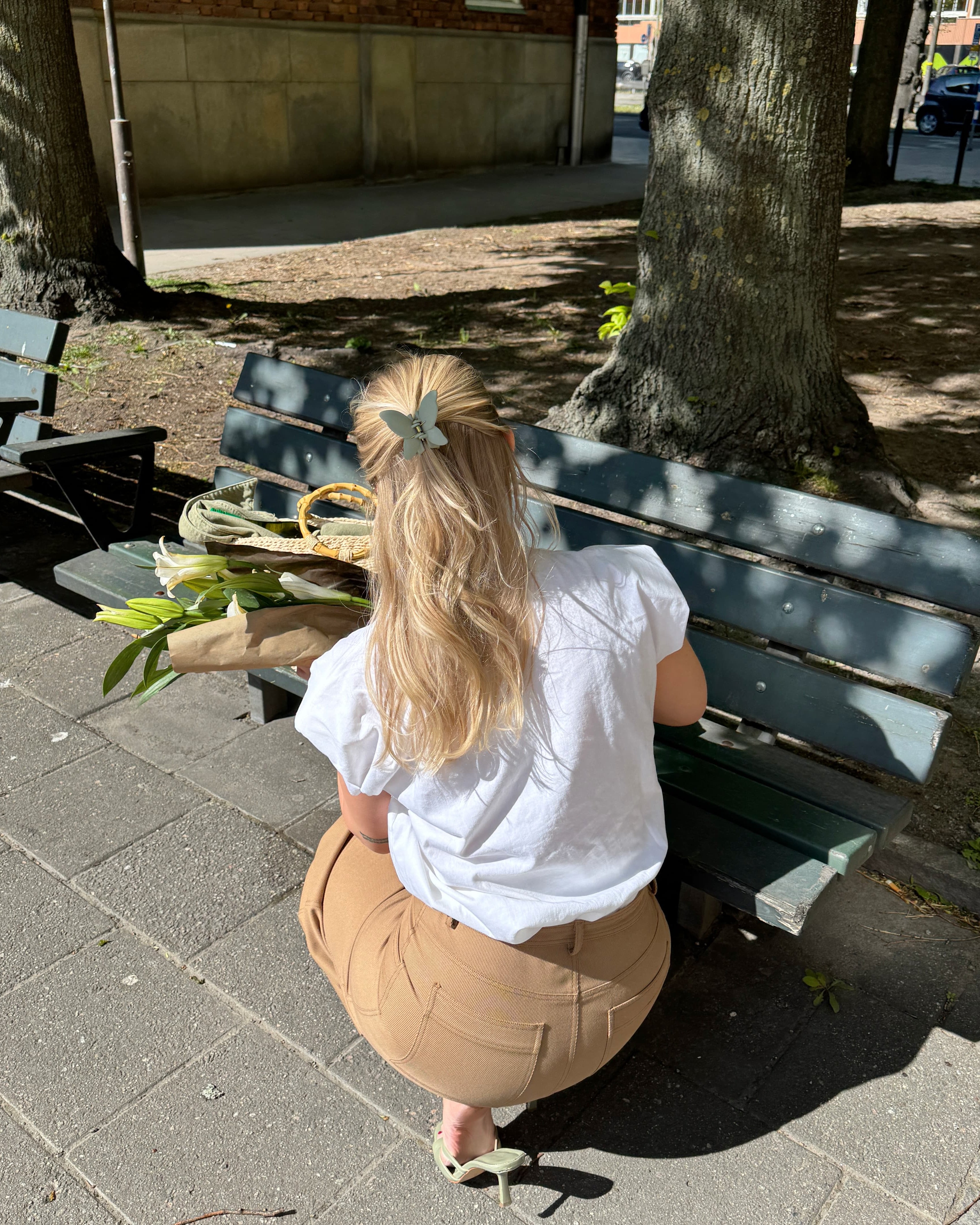 Våra fjärilshårklämmor har snabbt blivit en favorit, både hos oss själva och våra kunder. Med sin mjuka form, rundade vingar och stilrena design är de lika fina att bära som de är praktiska att använda. En fjärilshårklämma passar lika bra för vardagliga uppsättningar som till festligare tillfällen där du vill addera en diskret men lekfull touch.