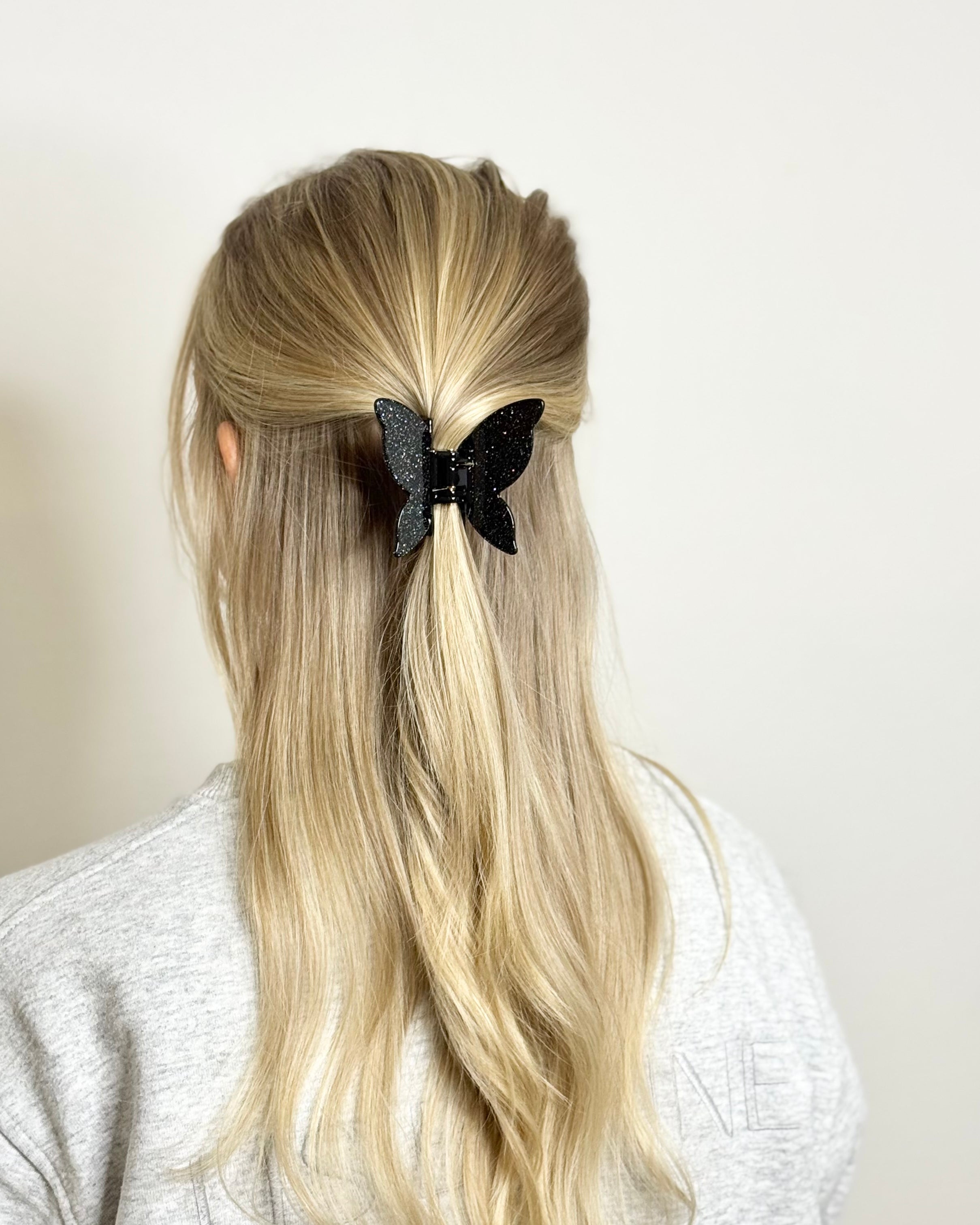 Large Butterfly Clip är vår största fjärilshårklämma. Den har ett lite större grepp och passar bra för dig med tjockt eller långt hår. Perfekt när du vill sätta upp hela håret eller halva håret i en fin uppsättning.