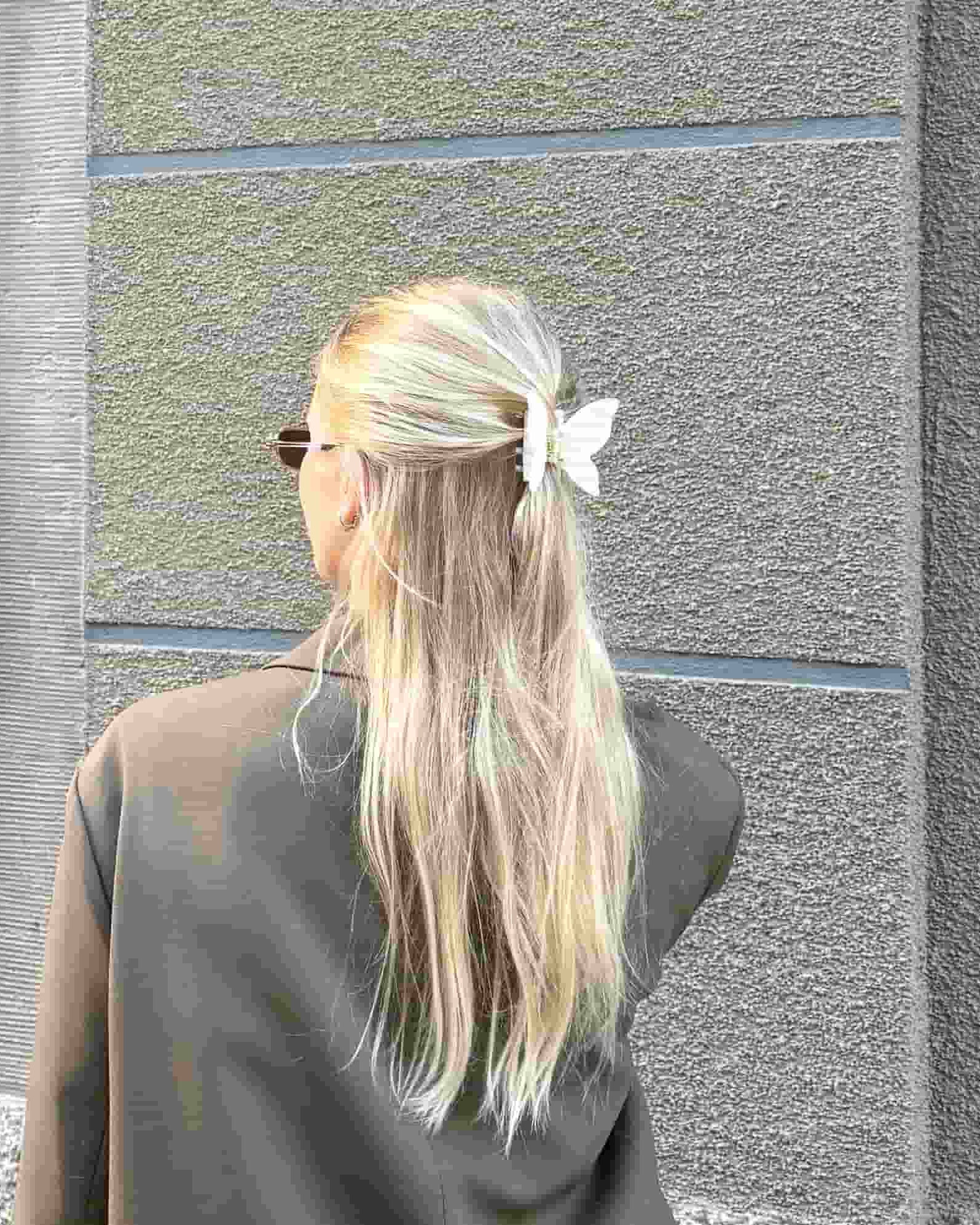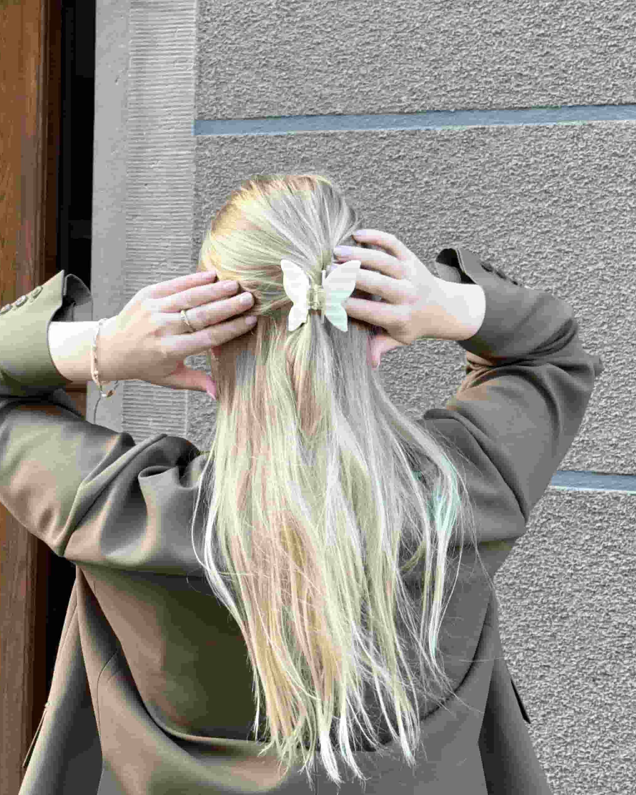 - Fäst upp håret i nacken med vår stora fjärilsklämma. Perfekt på kontoret, i bilen eller till en somrig middag.