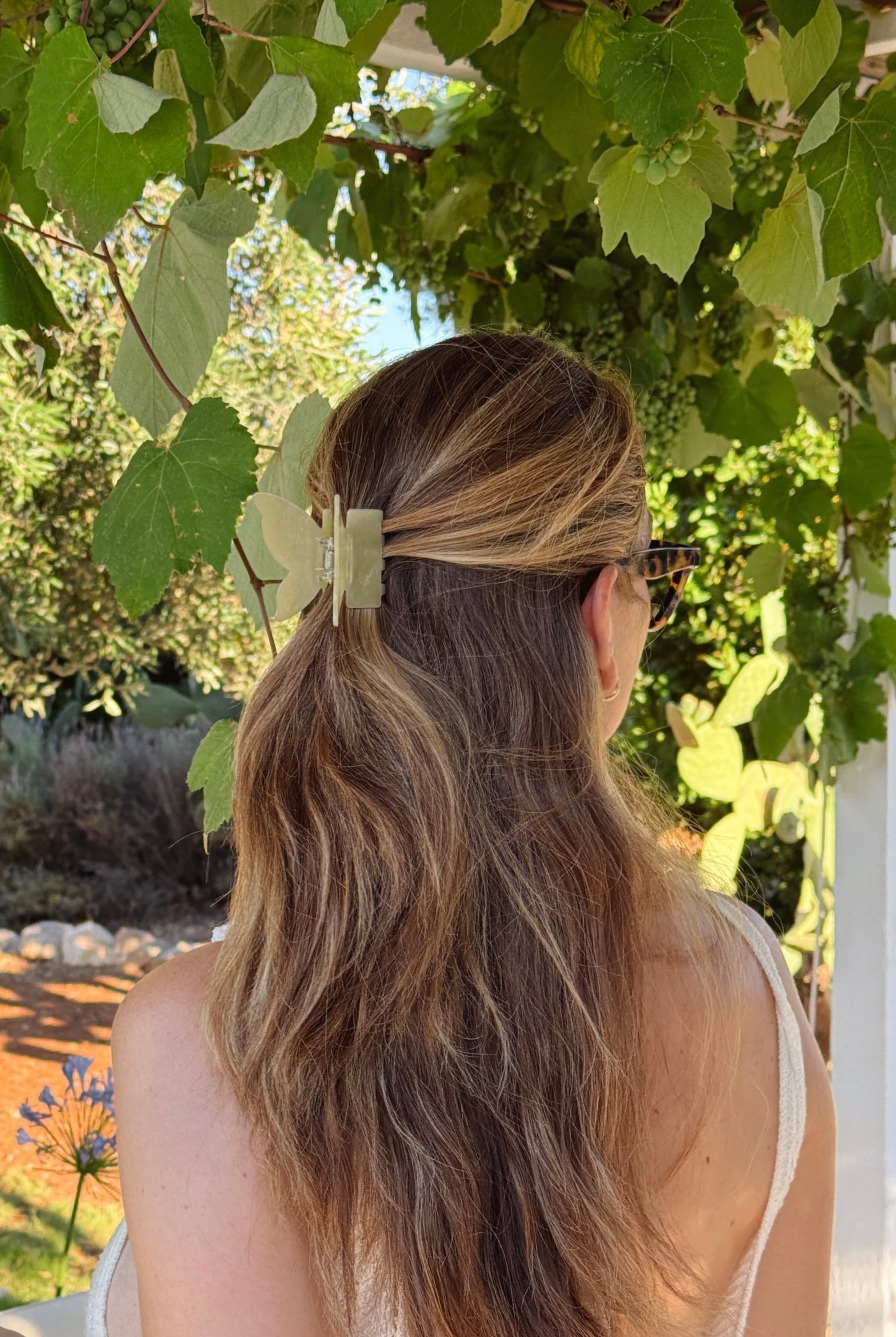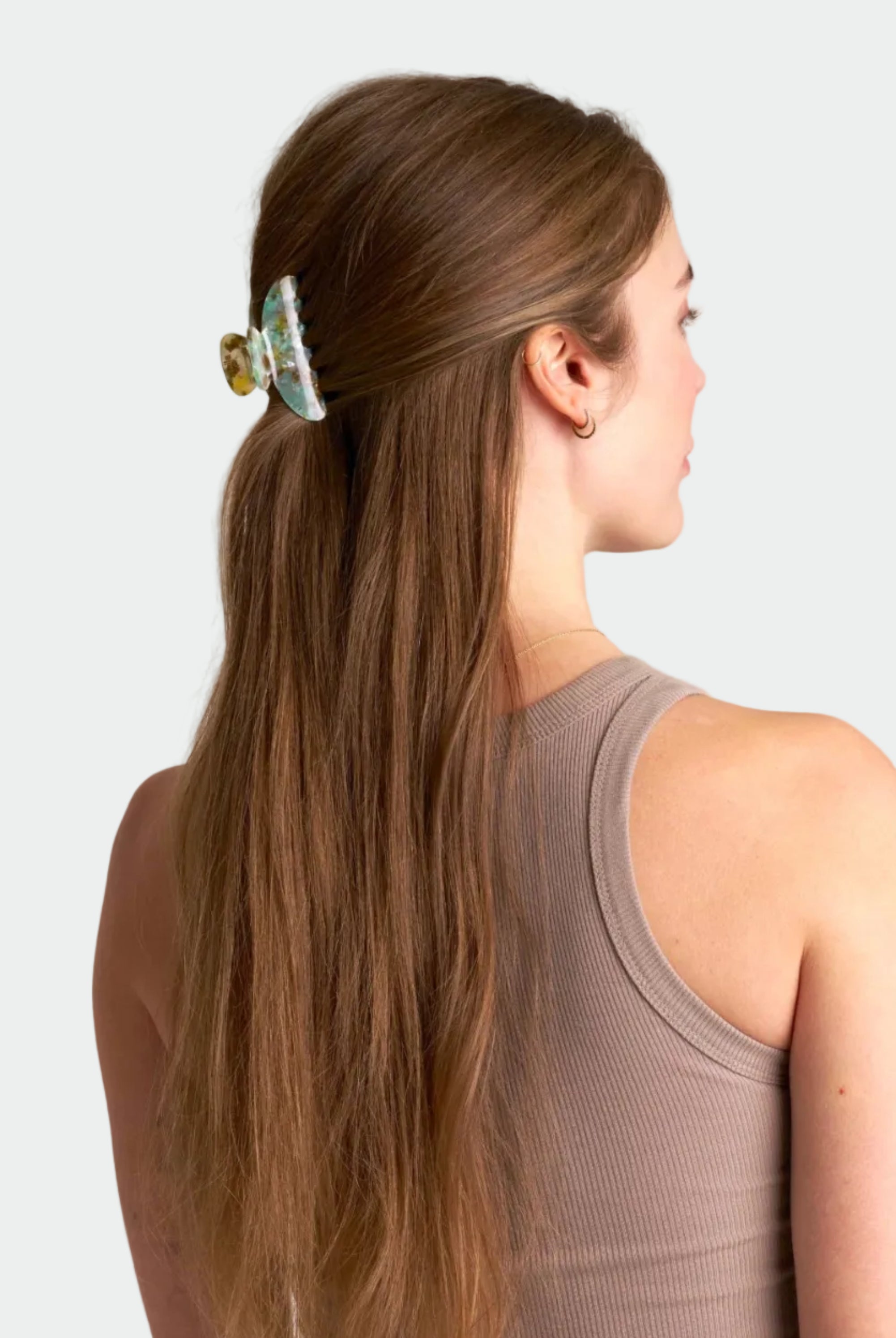 Och det gör den ofta. Oavsett om du är på väg till stranden, sitter på ett kafé, ska in i ett möte eller bara vill få undan håret vid matlagningen – hårklämman löser det snabbt och enkelt.