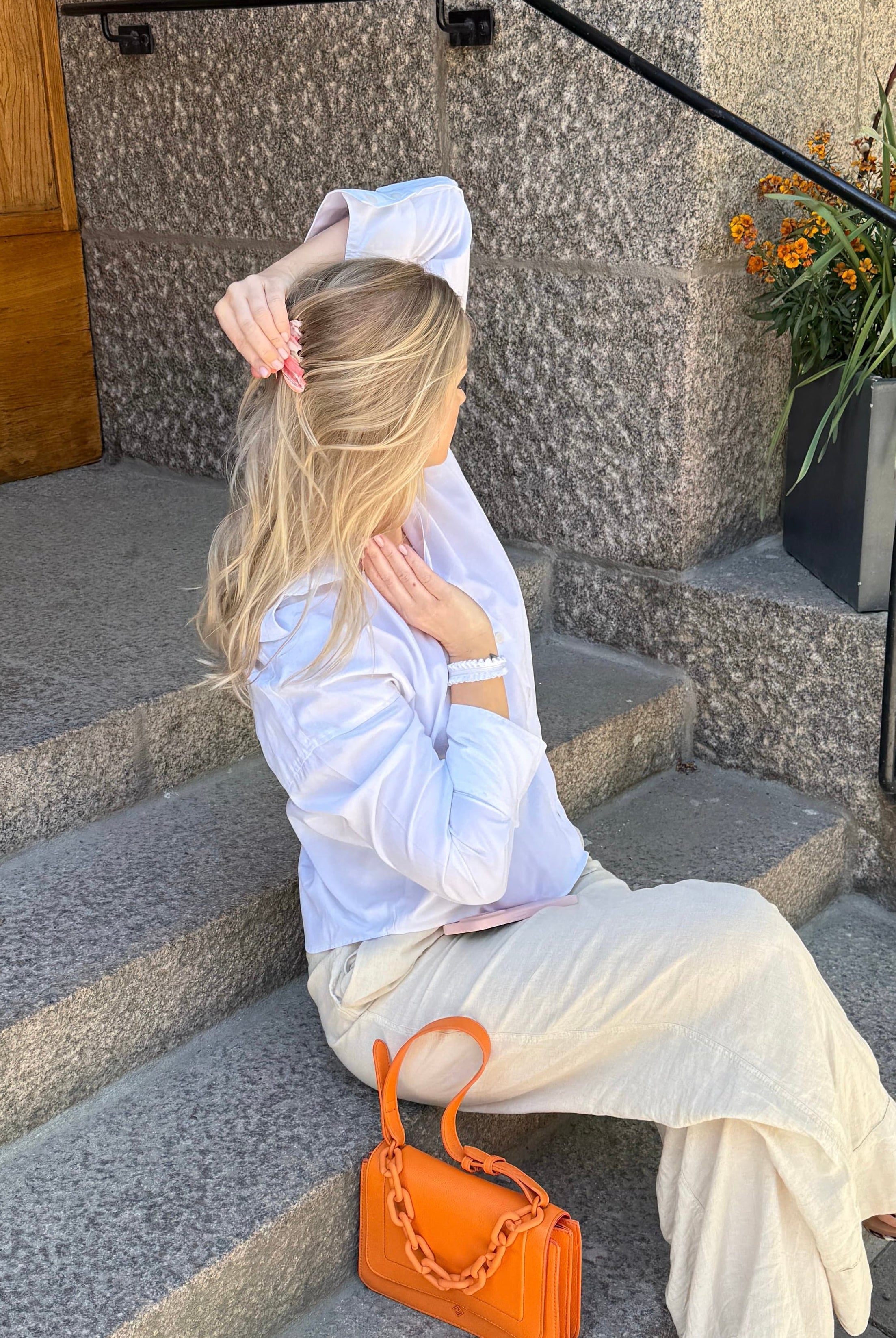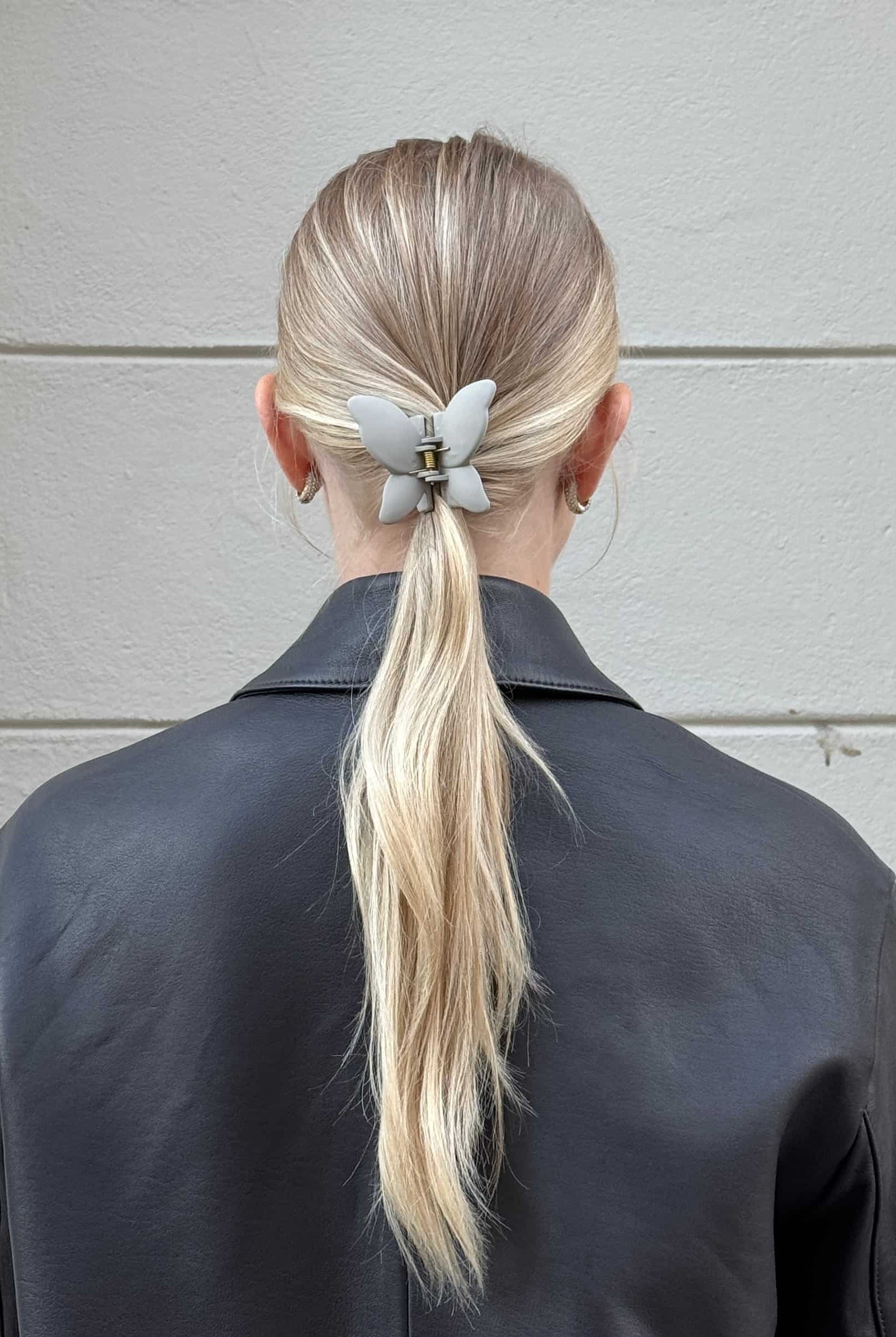 En neutral klämma i beige eller sköldpaddsmönster passar perfekt till en klassisk look. En klämma i rosa, blå eller grönt kan lyfta en enkel outfit och ge ett mer personligt uttryck. Våga leka med färg – som vit, brun eller kanske till och med svart för en elegant kontrast – eller håll dig till ton i ton. Det finns inget rätt eller fel. Bara det som känns bra.