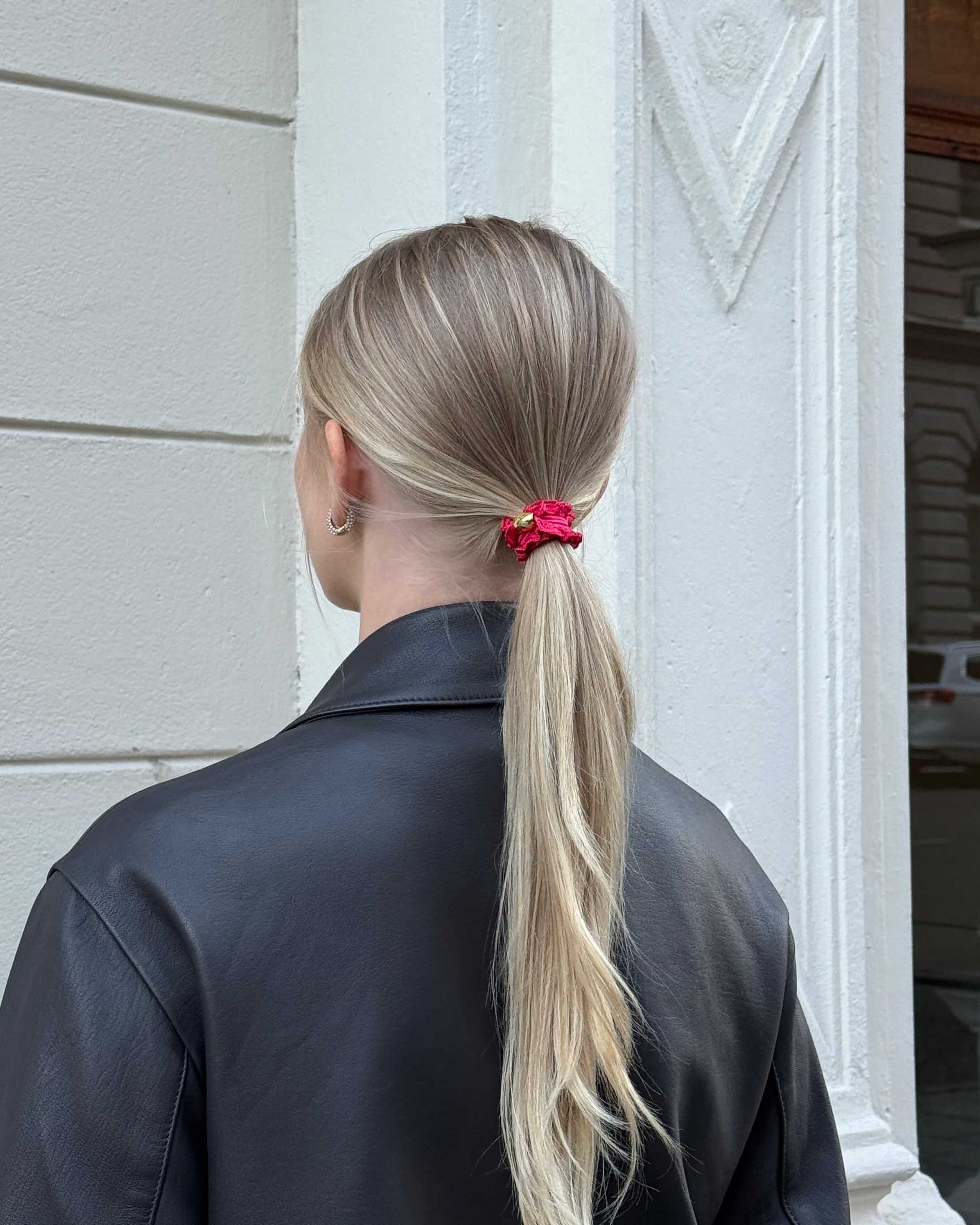 Upptäck röda hårsnoddar i olika varianter – hållbara, bekväma och alltid lika fina att bära.