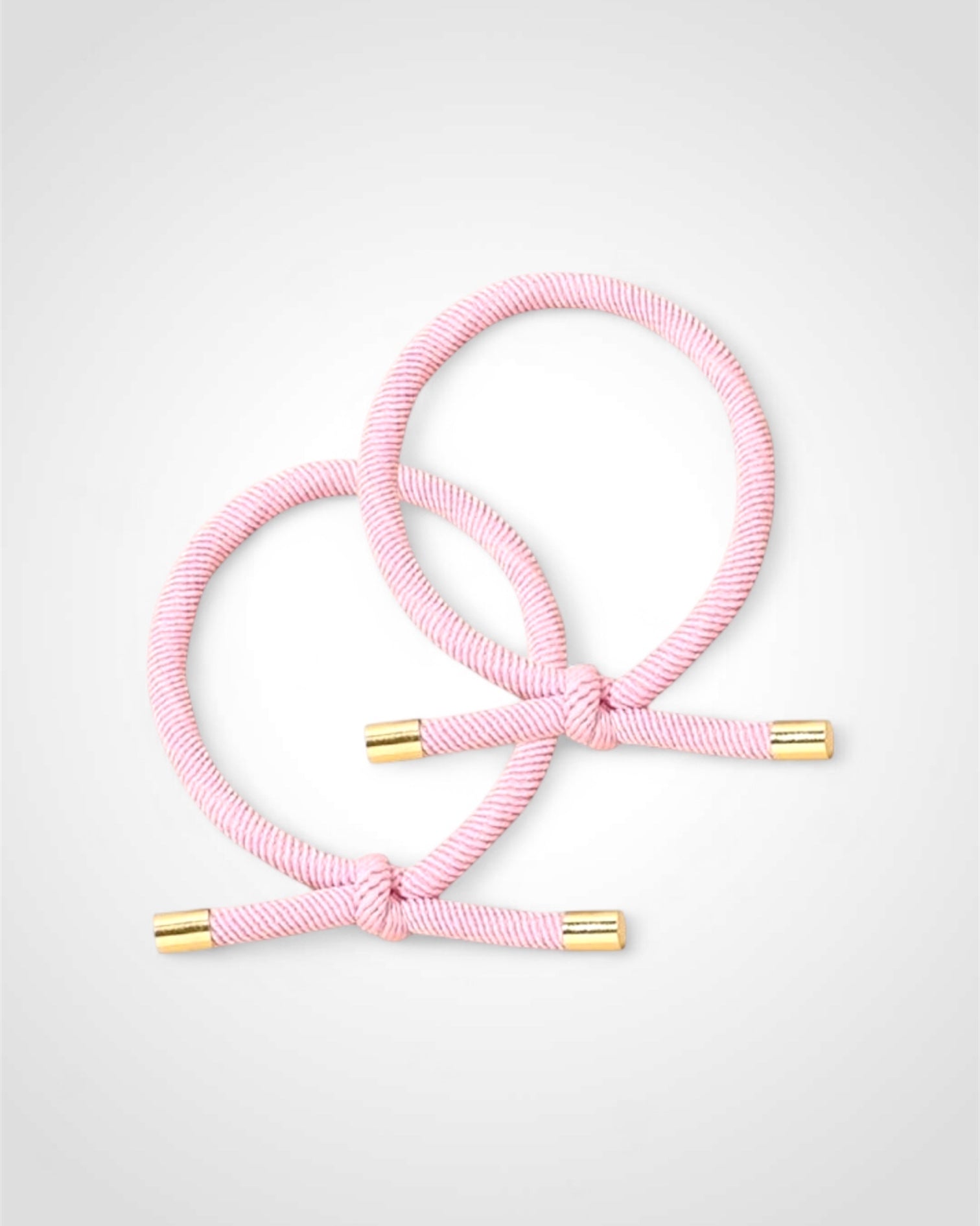Våra rosa hårsnoddar ger en mjuk och feminin känsla till varje frisyr. De är starka, elastiska och skonsamma mot håret – perfekta för vardagliga uppsättningar eller när du vill addera en subtil färgdetalj.