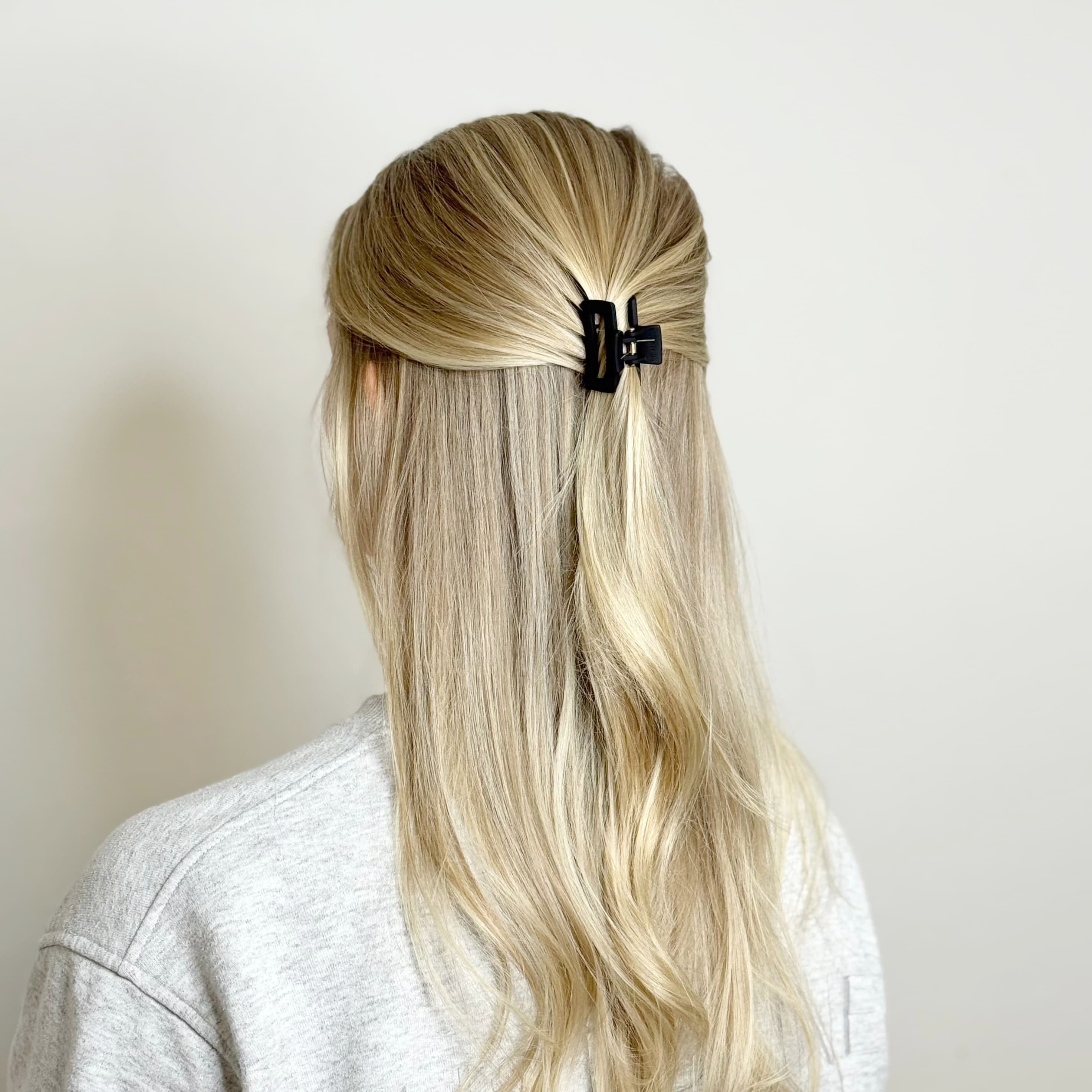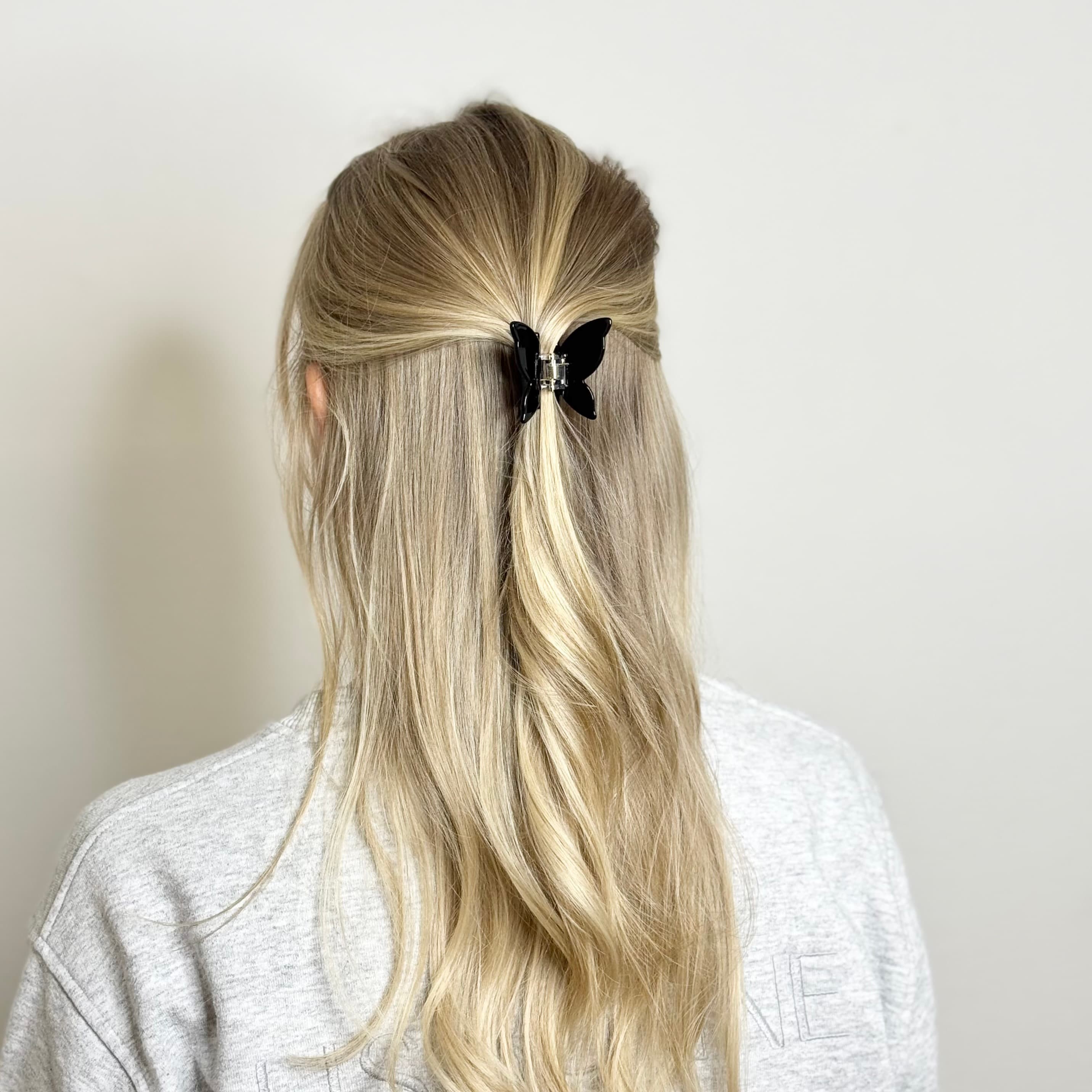 Våra svarta hårklämmor är ett tidlöst val som passar alla hårtyper och frisyrer. Den svarta färgen är lätt att matcha och ger ett stilrent, elegant uttryck oavsett hårets längd eller nyans.