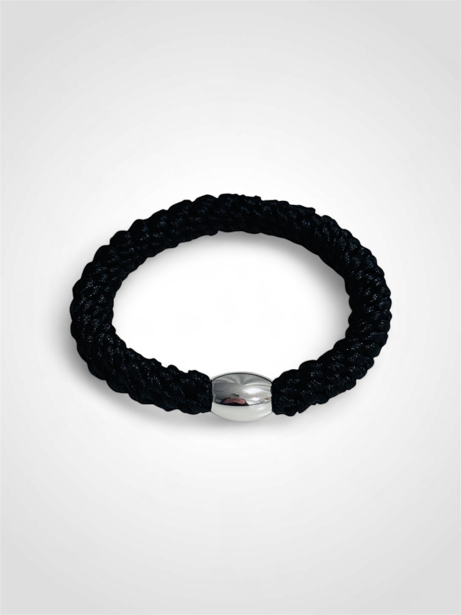 En tidlös svart hårsnodd med silverfärgad pärla – enkel, stilren och alltid rätt. Fin både i håret och runt handleden, som en liten detalj som gör mer än man tror. Den här snodden är mjuk, följsam och riktigt elastisk – utformad för att sitta bekvämt hela dagen utan att tappa formen.