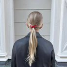 Röd hårsnodd med rosett. Lika skön och fin i håret som söt runt handleden. Alla Stella Details hårsnoddar är noggrant utformade med fokus på kvalitet och elasticitet.