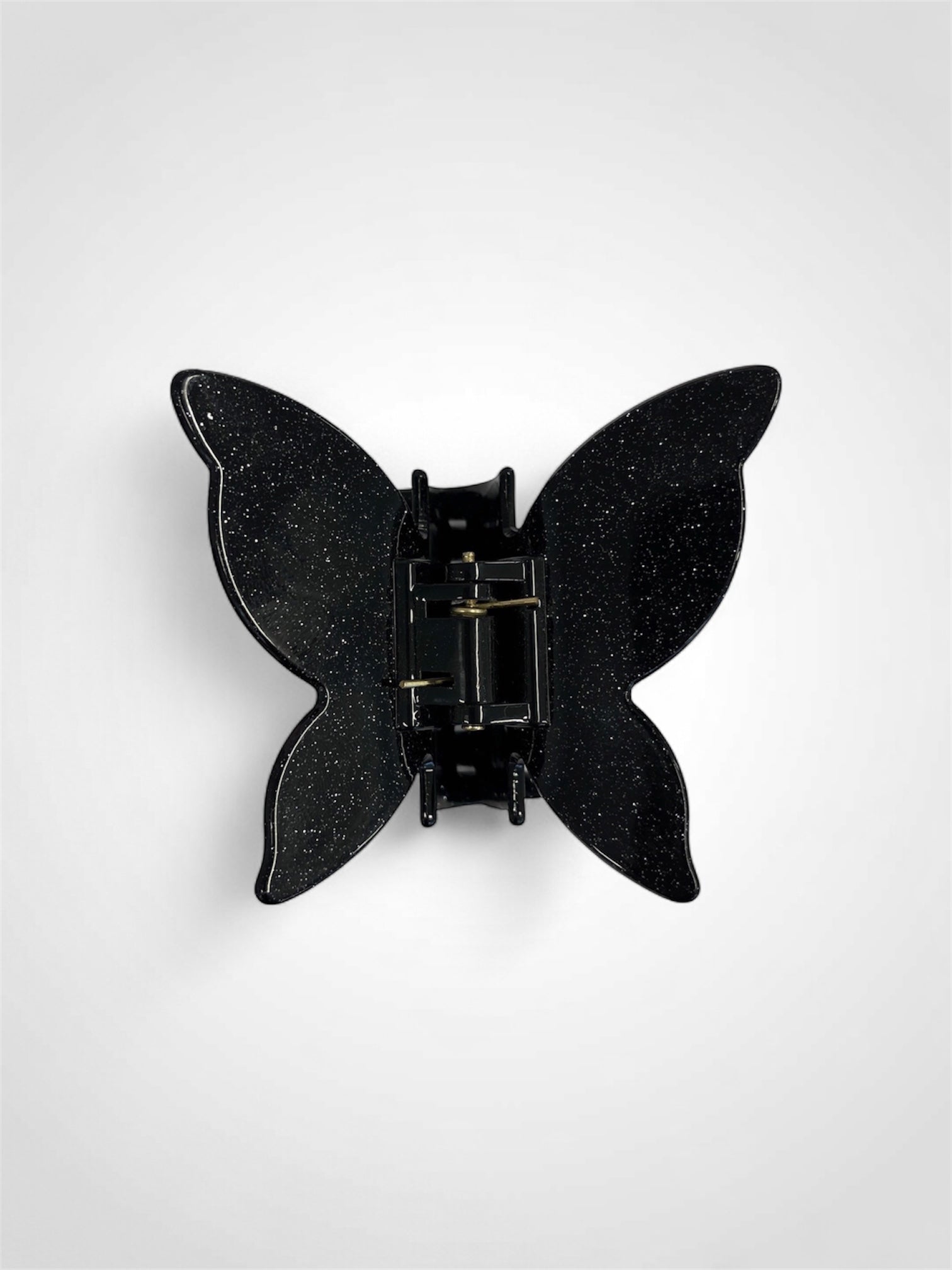 Du vet när håret bara måste upp – men du vill ändå känna dig lite fin. Den här svarta lite glittriga hårklämman är precis för de stunderna. Formad som en fjäril, men gjord för att hålla ihop en snabb och enkel uppsättning.
