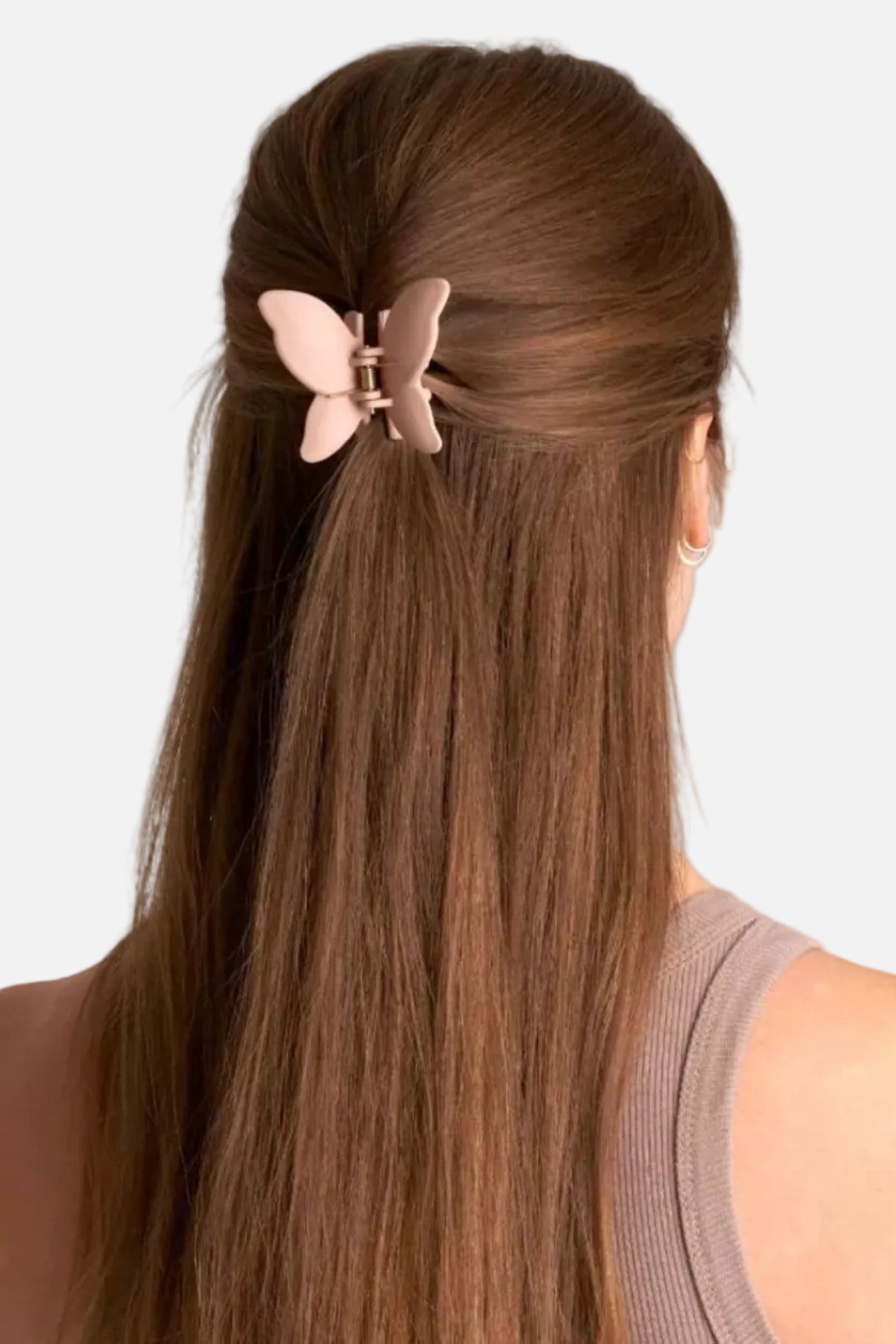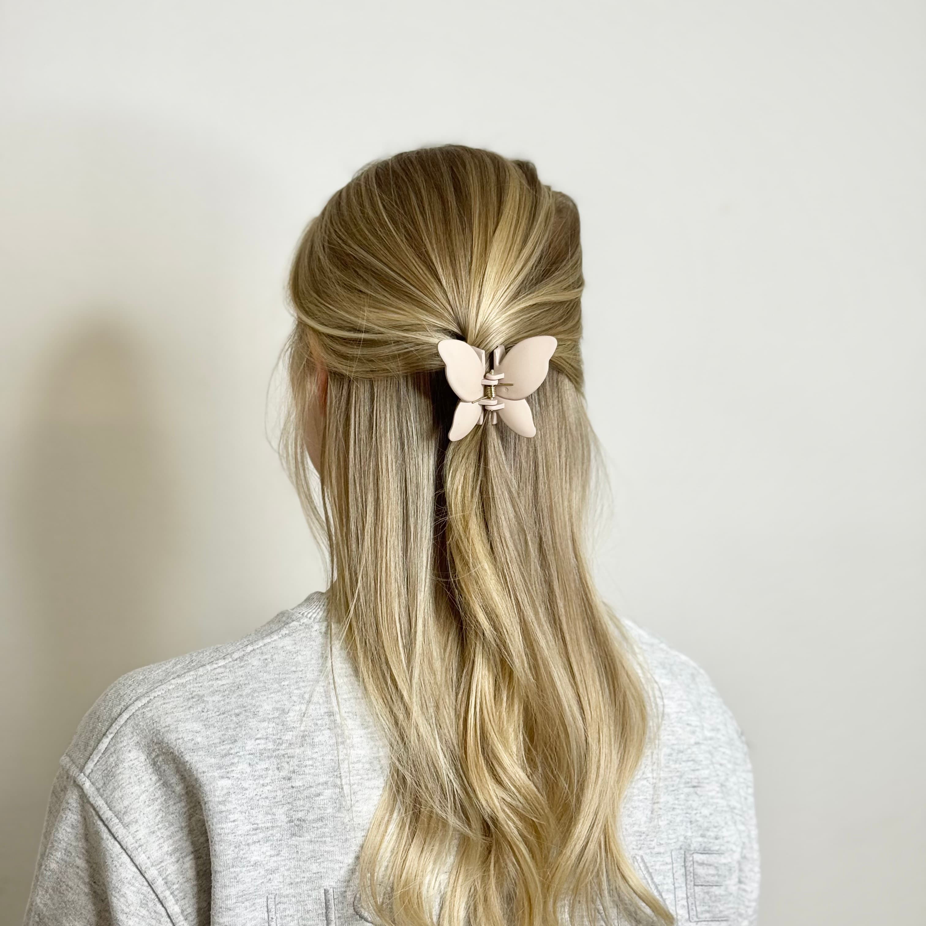 Du vet när håret bara måste upp – men du vill ändå känna dig lite fin. Den här matta hårklämman i en gammelrosa ton är precis för de stunderna. Formad som en fjäril, men gjord för att hålla ihop en snabb och enkel uppsättning.