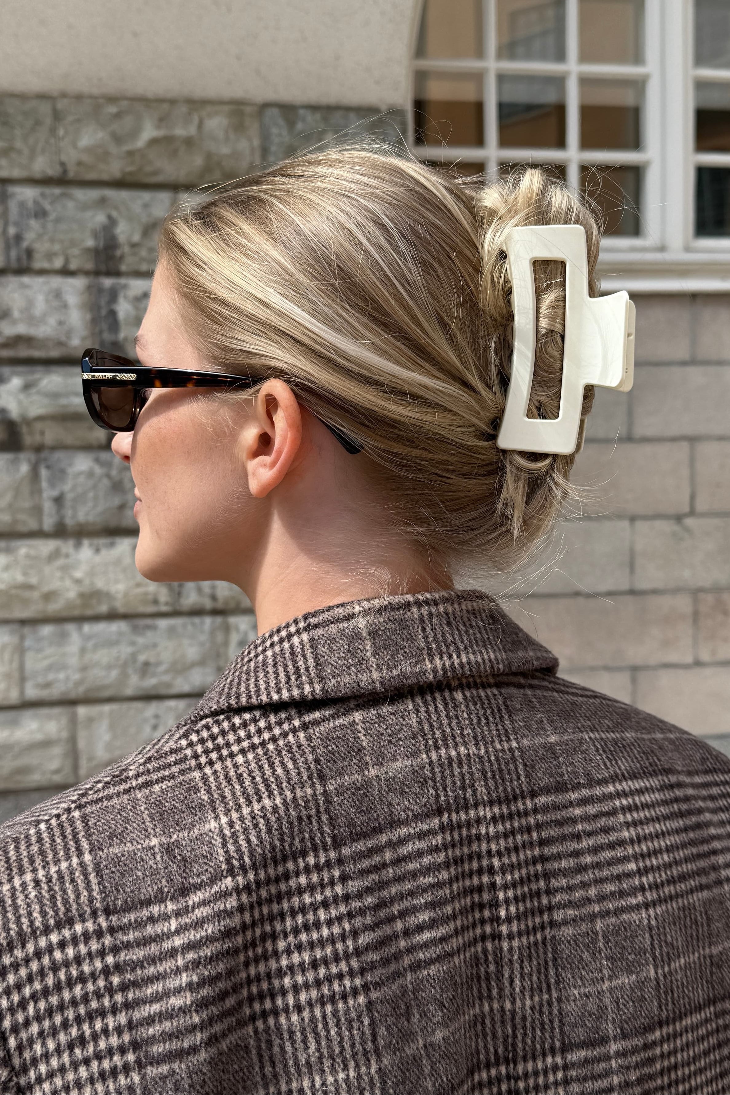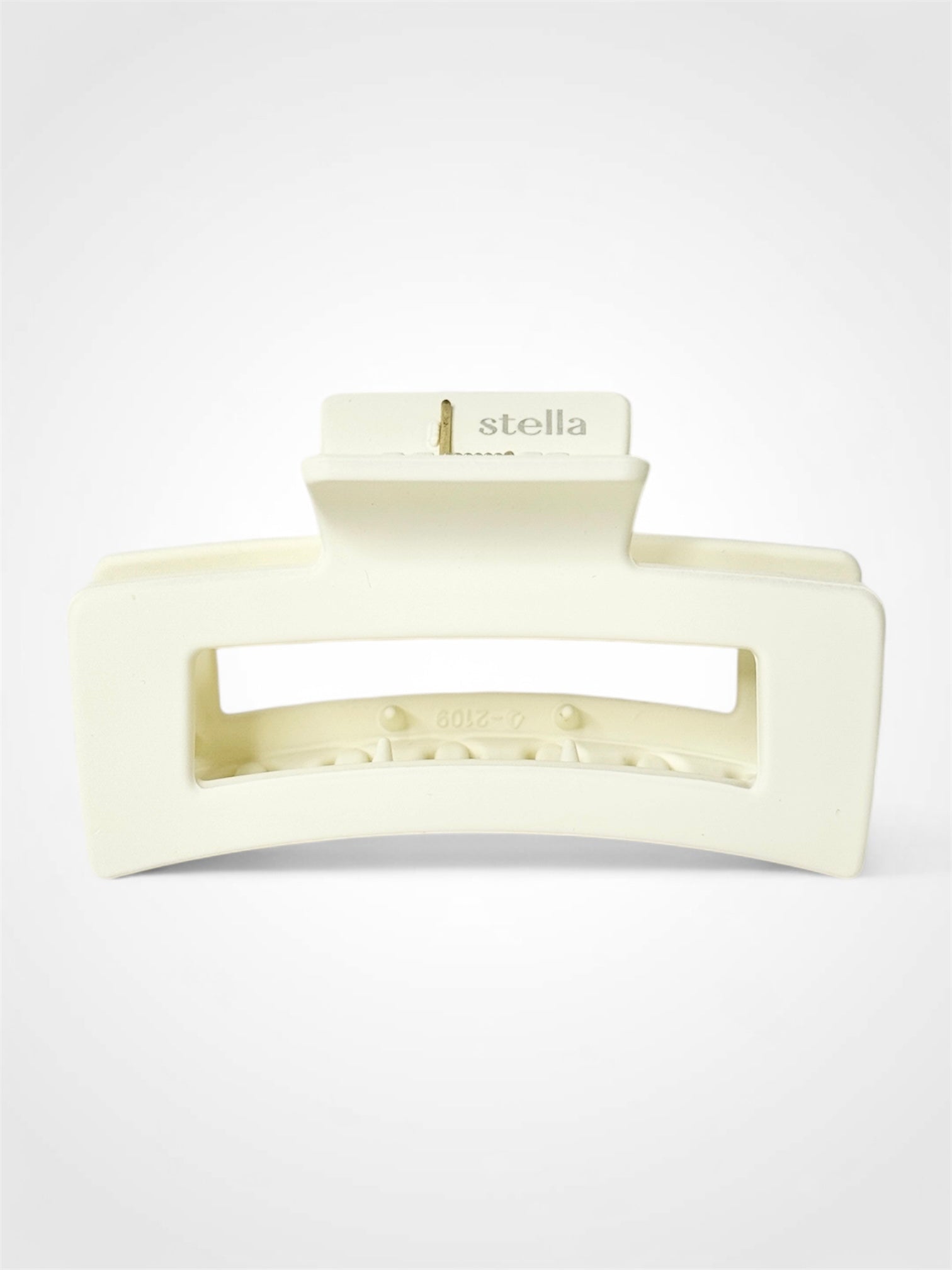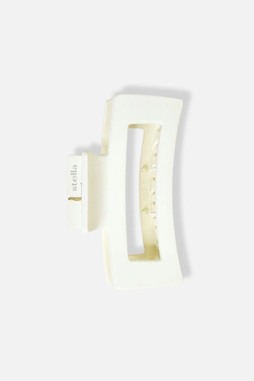 En stor cremévit hårklämma som verkligen håller håret på plats hela dagen. Den matta finishen och enkla formen ger ett stilrent uttryck. Men det bästa, den sitter där den ska, även i tunt, tjockt eller glatt hår tack vara dess starka grepp och de extra piggarna på insidan.