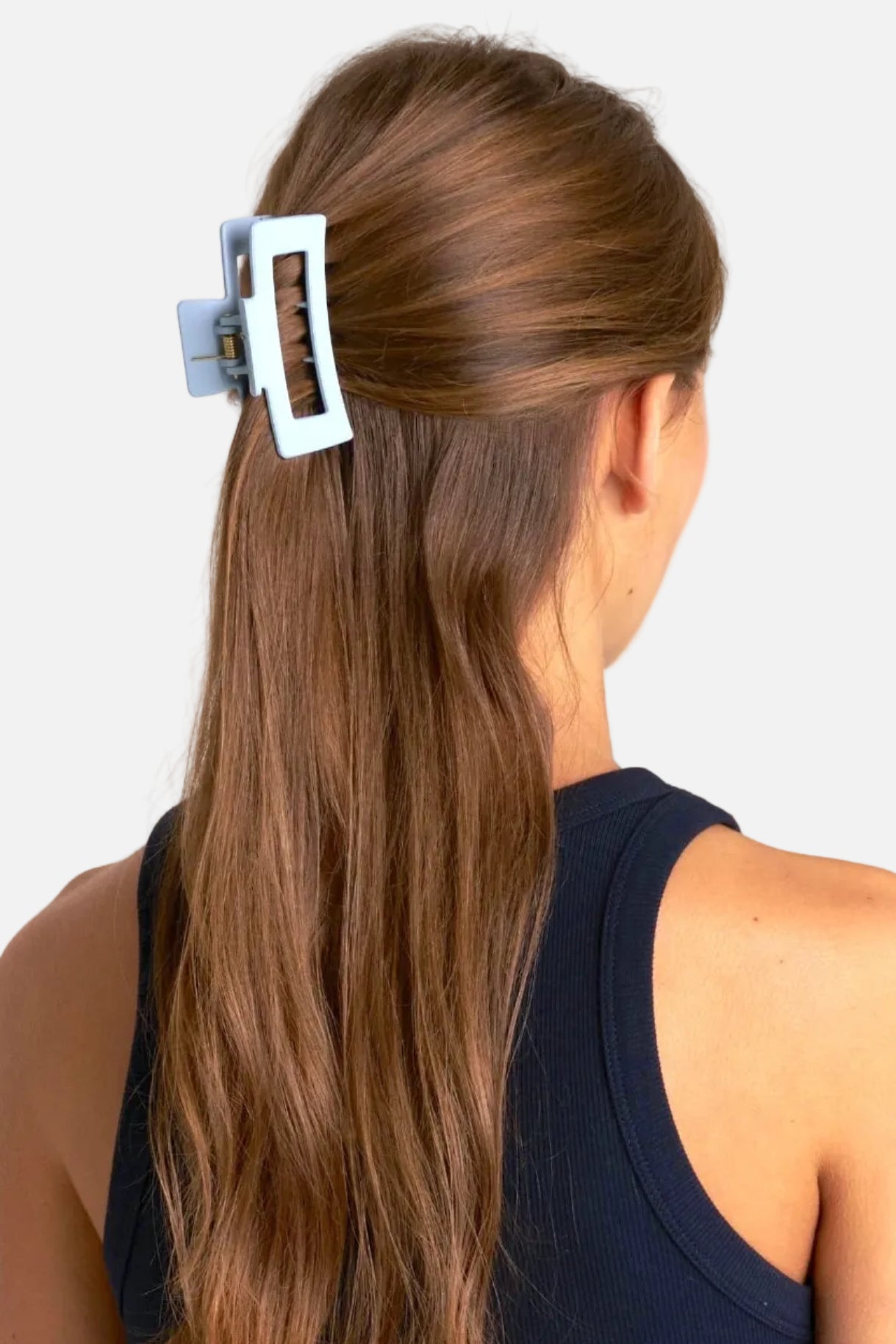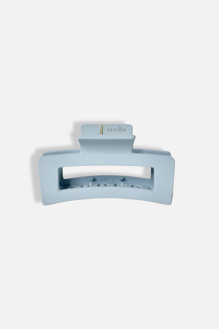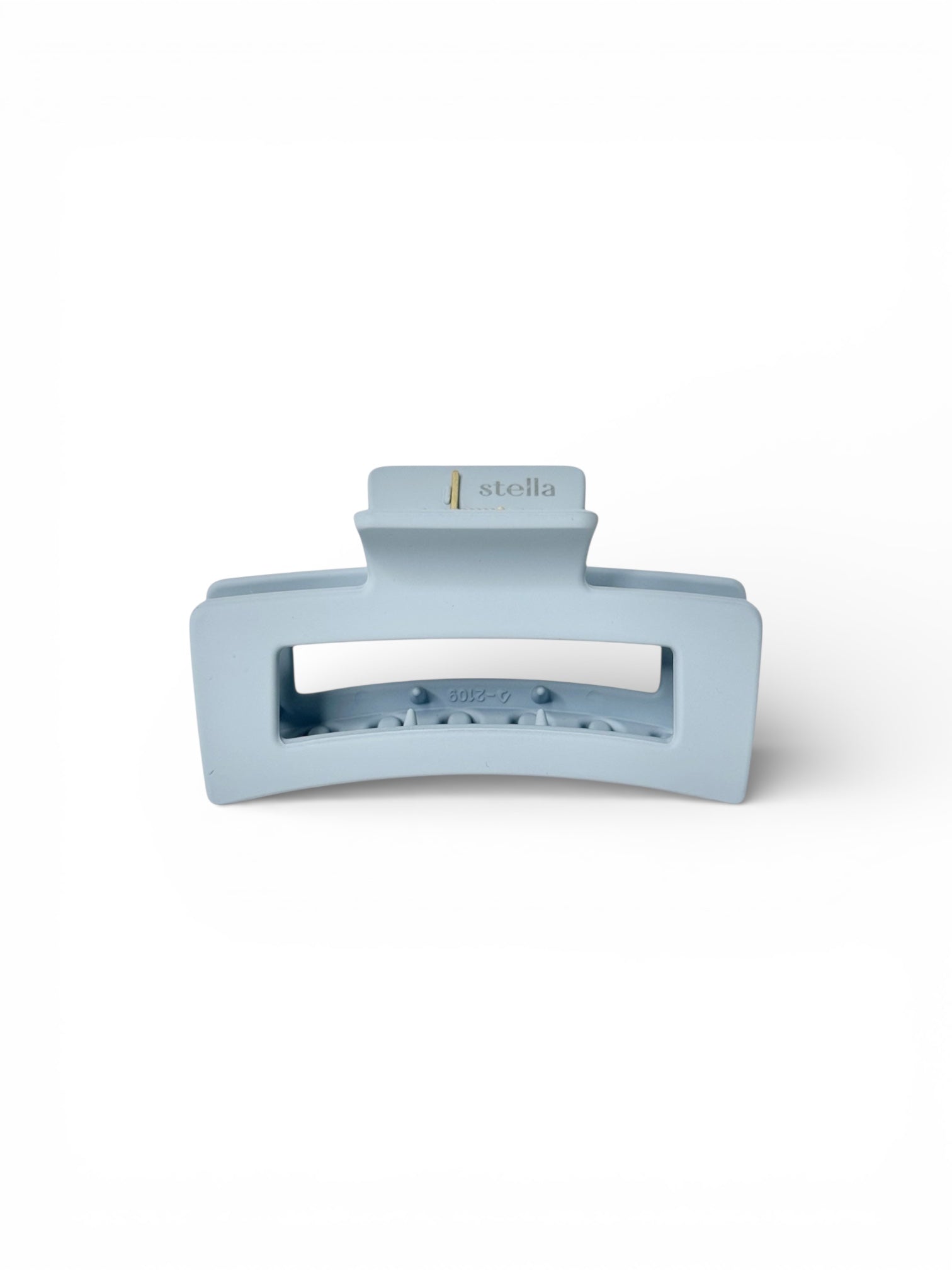 En mellanstor hårklämma med en matt blå finish – enkel, stilren och skapad för att sitta riktigt stadigt. Den klassiska formen tillsammans med de små piggarna på insidan ger ett extra bra grepp som håller håret på plats hela dagen.