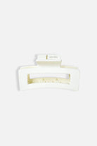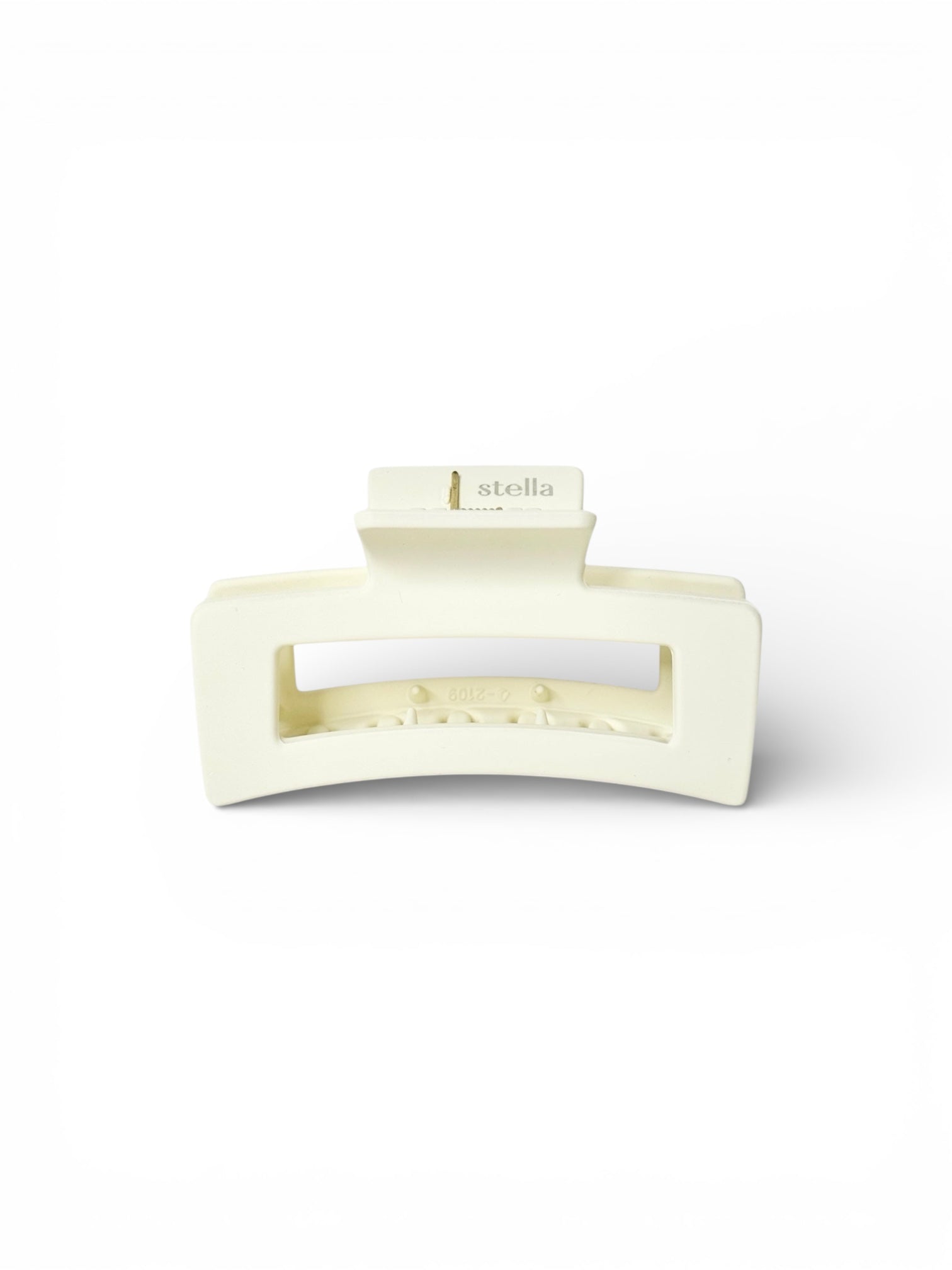 En mellanstor hårklämma med matt cremévit finish – enkel, stilren och skapad för att sitta riktigt stadigt. Den klassiska formen tillsammans med de små piggarna på insidan ger ett extra bra grepp som håller håret på plats hela dagen.