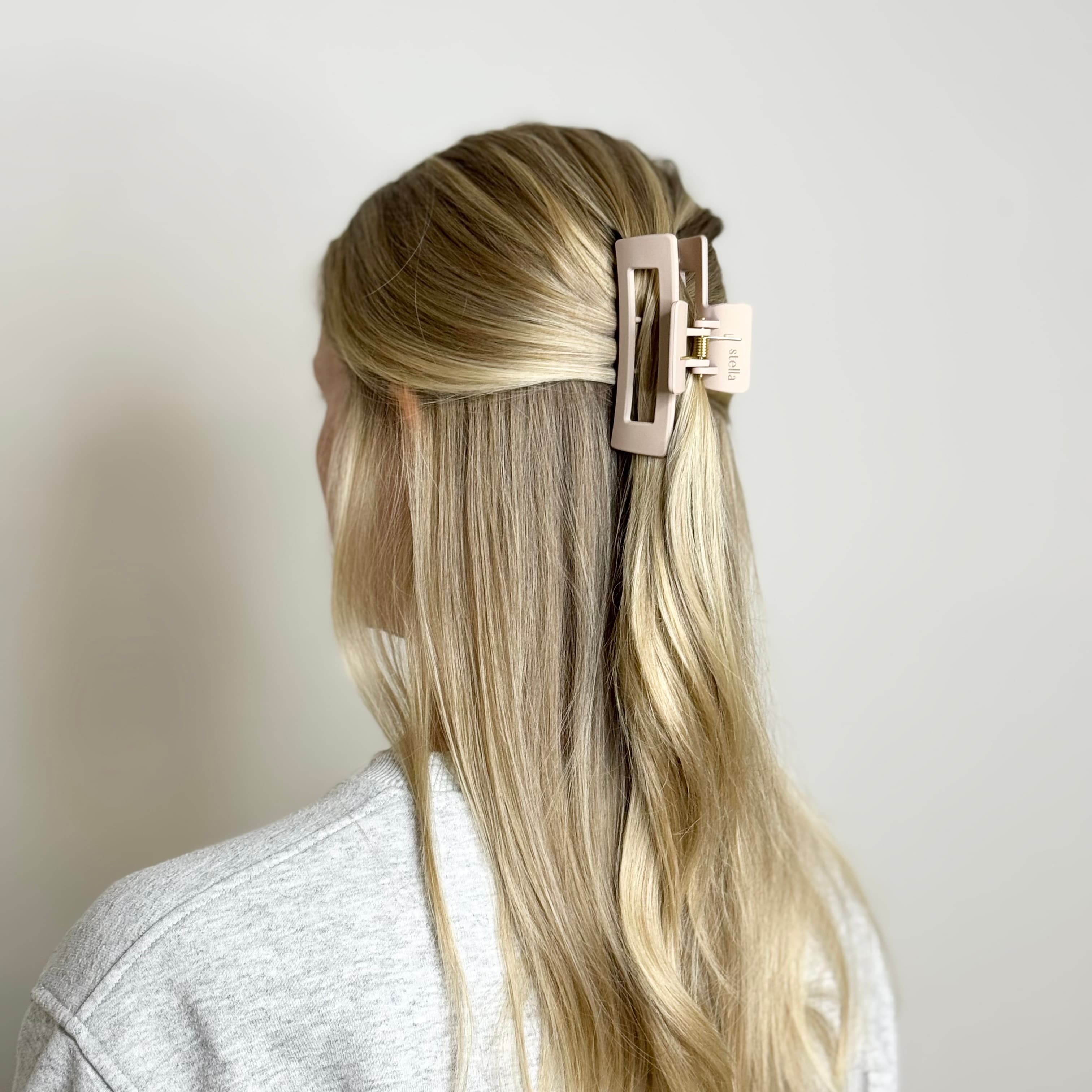 Storleken gör den mångsidig: perfekt för heluppsättningar i tunnare hår, eller för halvuppsättningar om du har tjockare hår. En håraccessoar du alltid kan lita på – när håret behöver komma upp och sitta kvar.