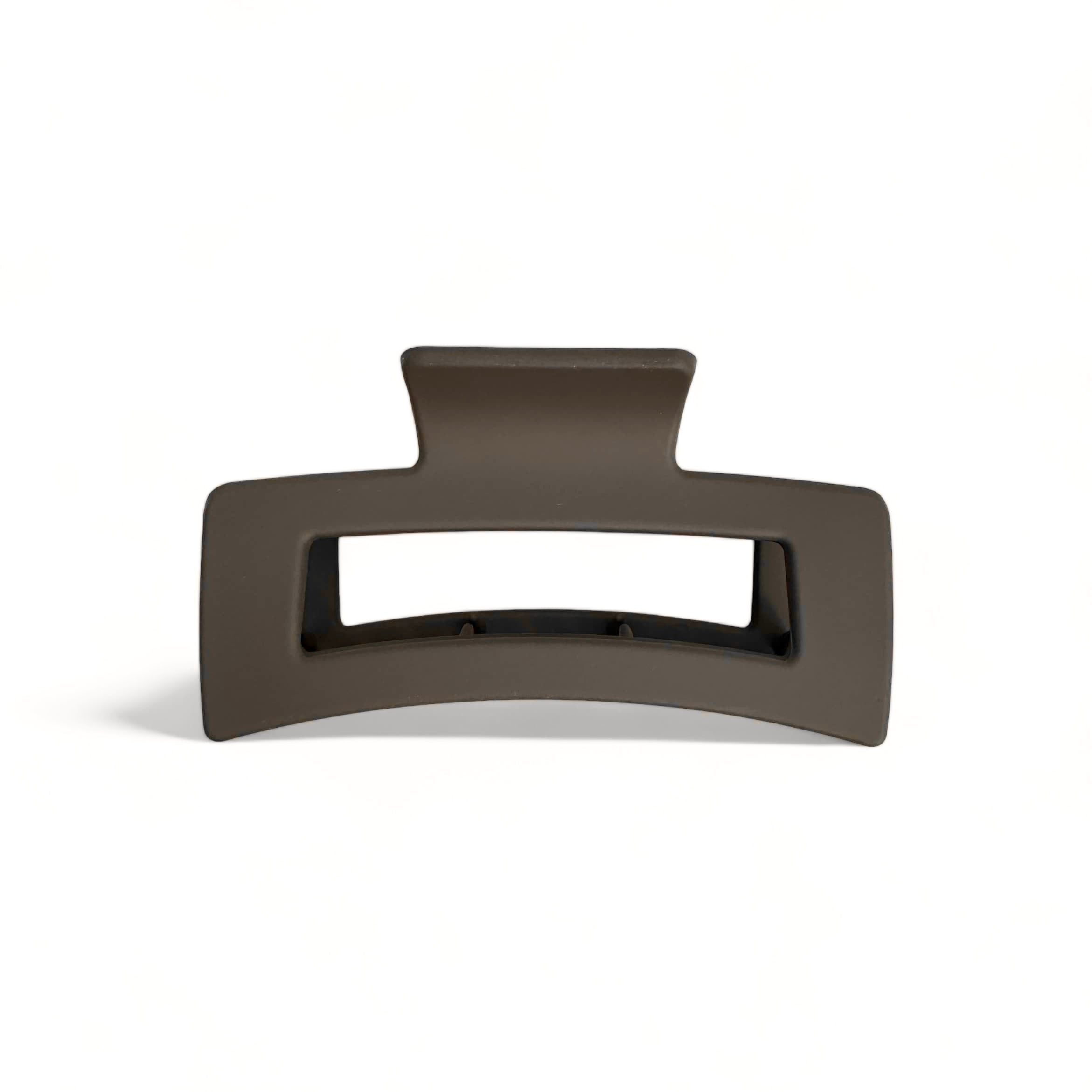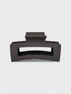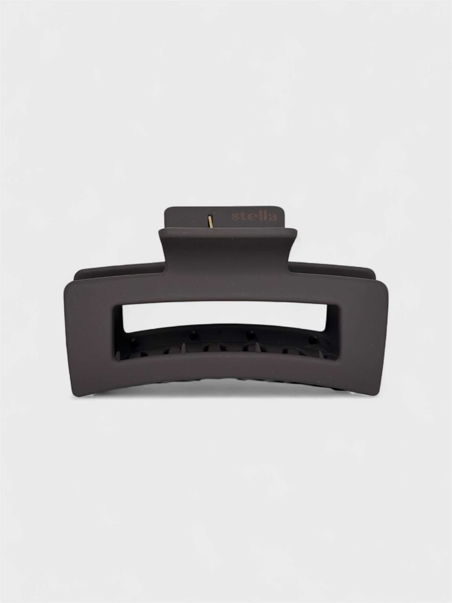 En mellanstor mörkbrun hårklämma med matt finish – enkel, stilren och skapad för att sitta riktigt stadigt. Den klassiska formen tillsammans med de små piggarna på insidan ger ett extra bra grepp som håller håret på plats hela dagen.