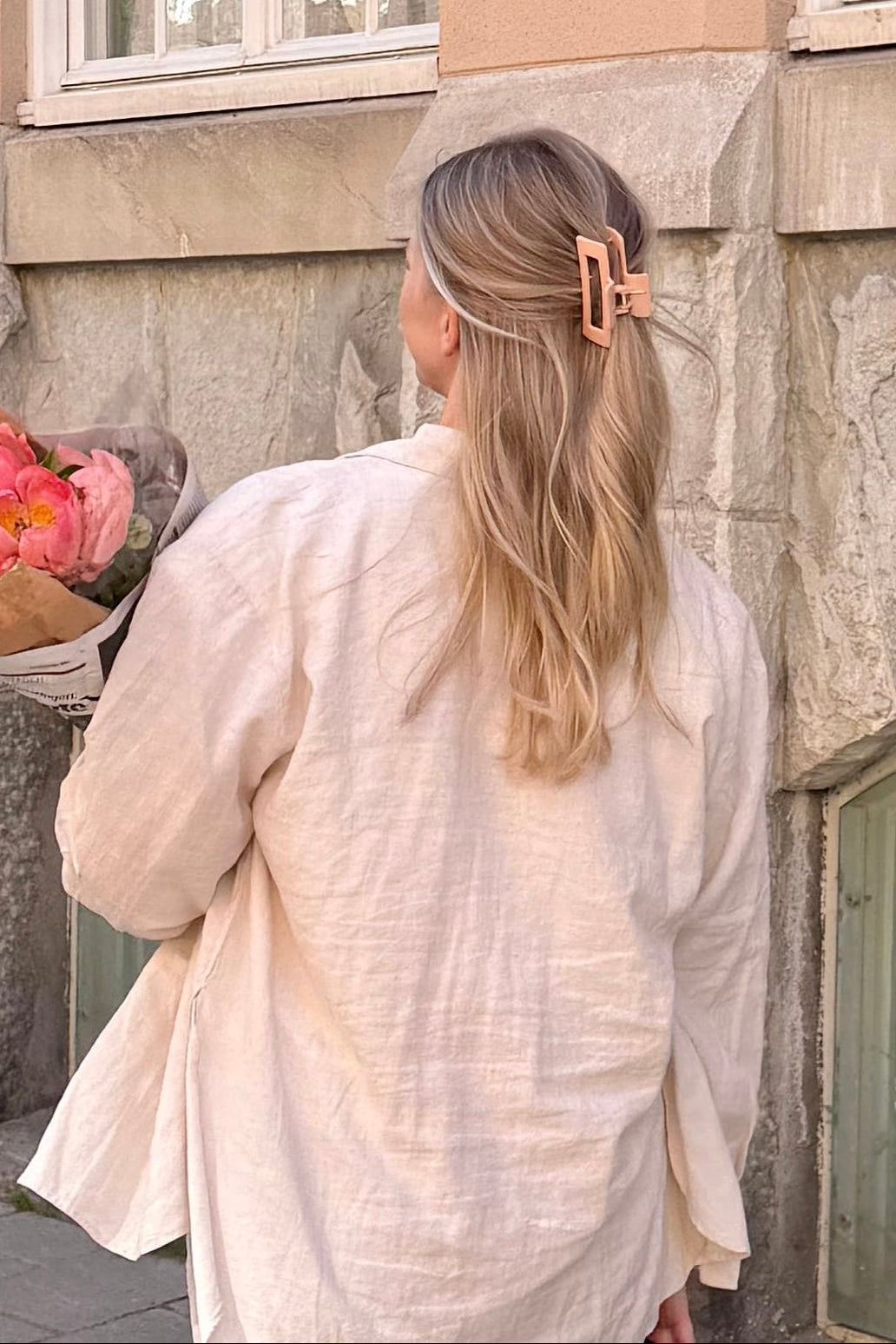Storleken gör den mångsidig: perfekt för heluppsättningar i tunnare hår, eller för halvuppsättningar om du har tjockare hår. En håraccessoar du alltid kan lita på – när håret behöver komma upp och sitta kvar.