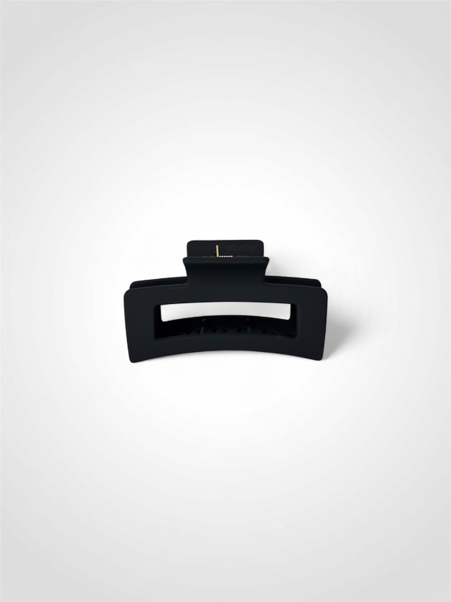 En liten svart hårklämma med matt finish – stilren, smidig och överraskande stark för sin storlek. Den klassiska formen tillsammans med de små piggarna på insidan ger ett bra grepp, trots det nätta formatet. Perfekt för att fästa små sektioner! En håraccessoar som känns både diskret och pålitlig – liten nog att alltid ha med, men tillräckligt stark för att göra jobbet.