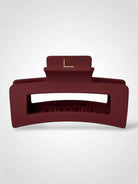 En stor mörkt röd hårklämma som verkligen håller håret på plats hela dagen. Den matta finishen och enkla formen ger ett stilrent uttryck. Men det bästa, den sitter där den ska, även i tunt, tjockt eller glatt hår tack vara dess starka grepp och de extra piggarna på insidan.