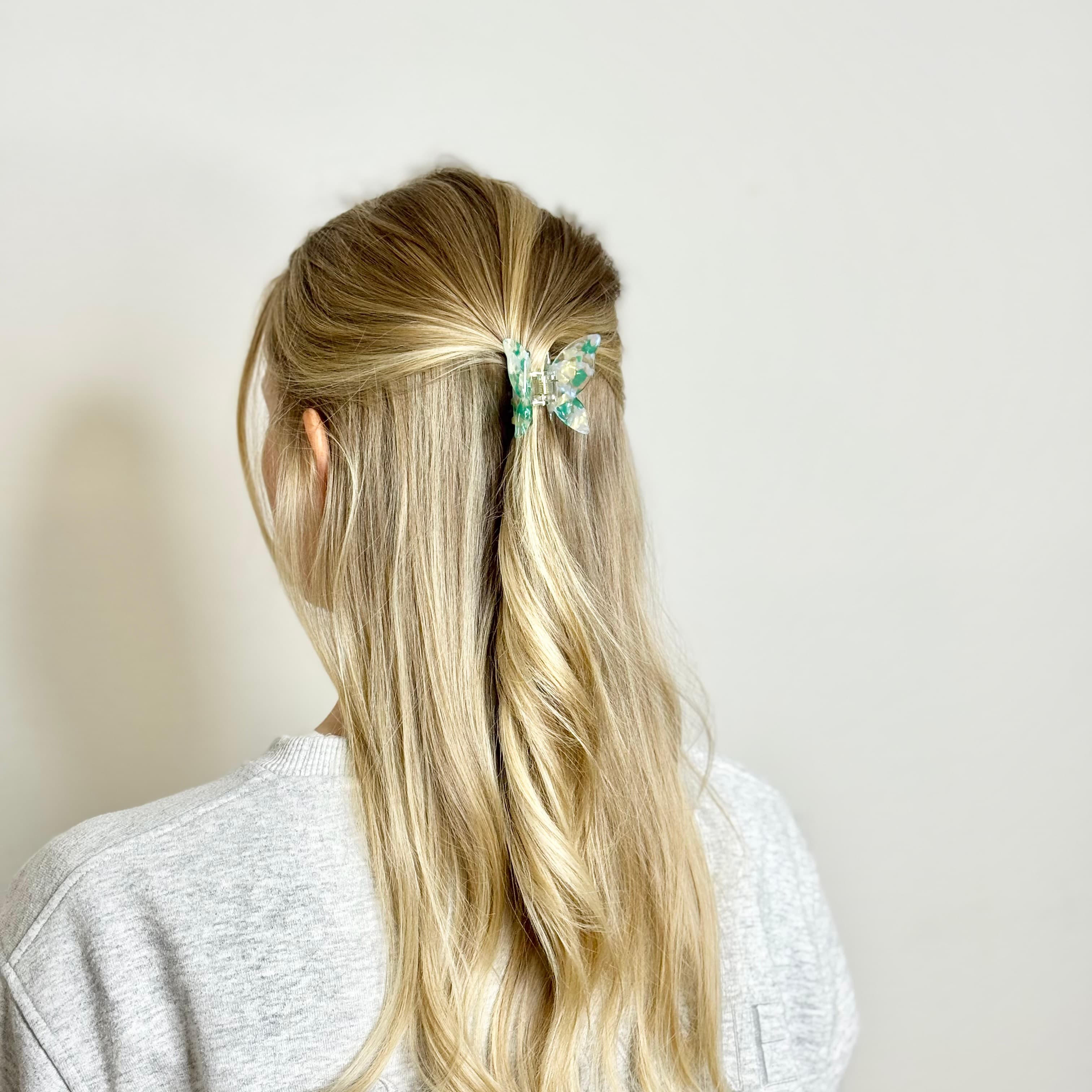 Du vet när håret bara måste upp – men du vill ändå känna dig lite fin. Den här hårklämman är precis för de stunderna. Formad som en fjäril, gjord för att hålla ihop en snabb och enkel uppsättning.