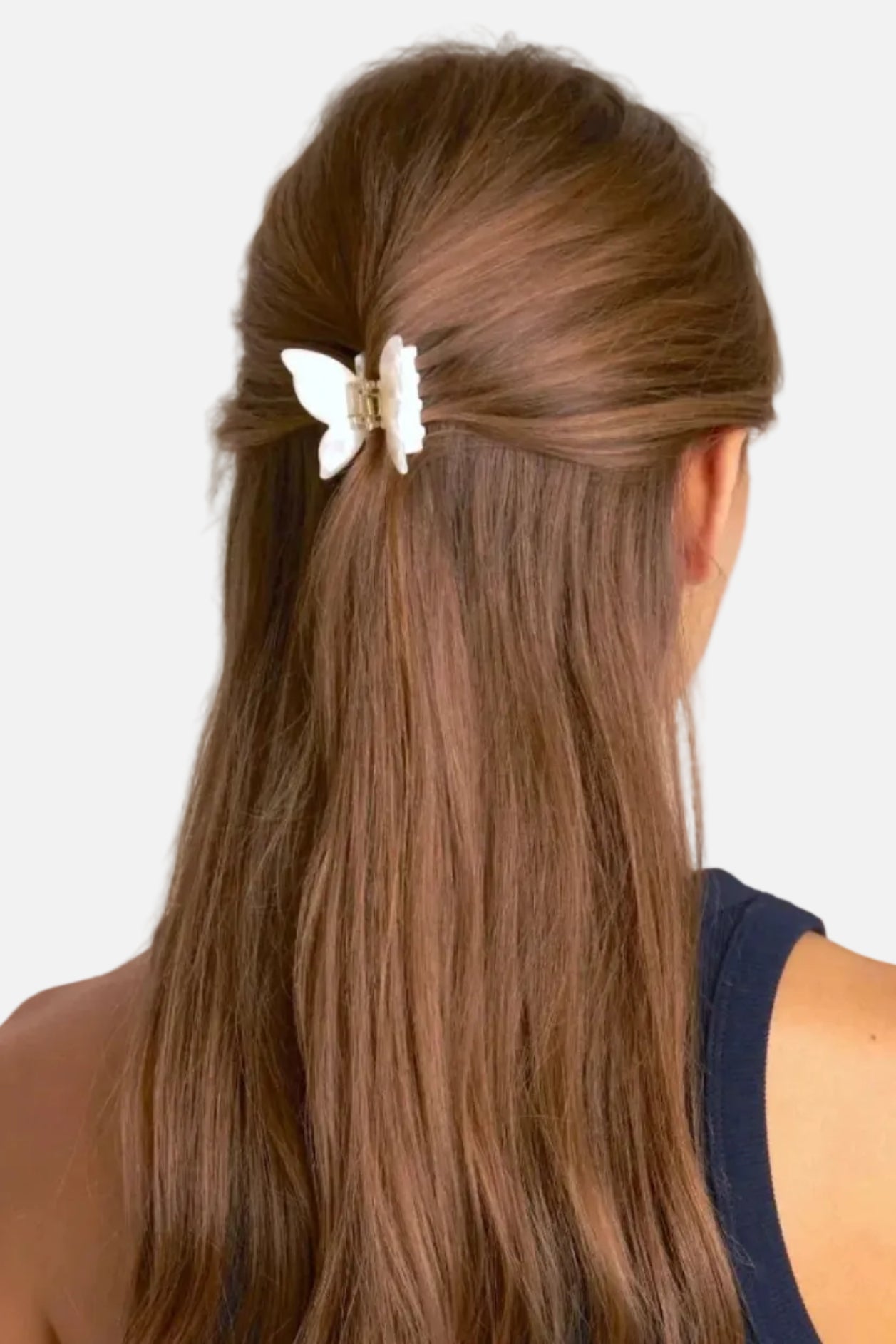 Du vet när håret bara måste upp – men du vill ändå känna dig lite fin. Den här hårklämman är precis för de stunderna. Formad som en fjäril, gjord för att hålla ihop en snabb och enkel uppsättning.