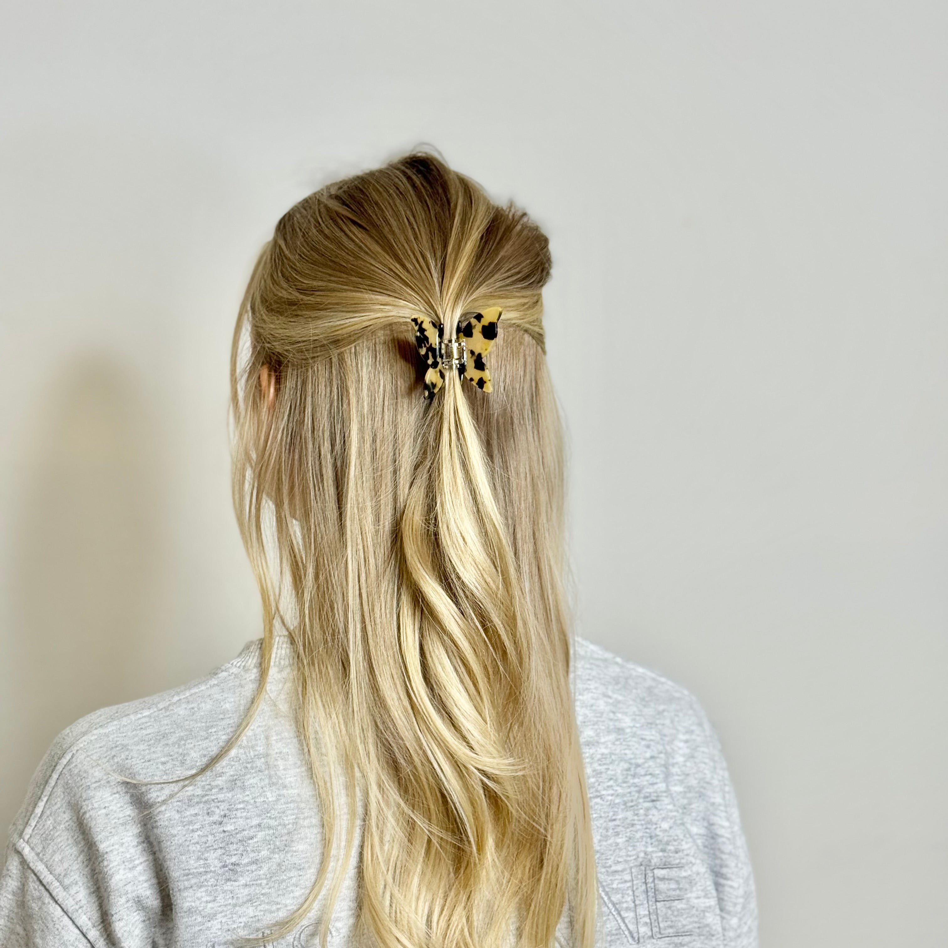 Du vet när håret bara måste upp – men du vill ändå känna dig lite fin. Den här hårklämman är precis för de stunderna. Formad som en fjäril, gjord för att hålla ihop en snabb och enkel uppsättning.
