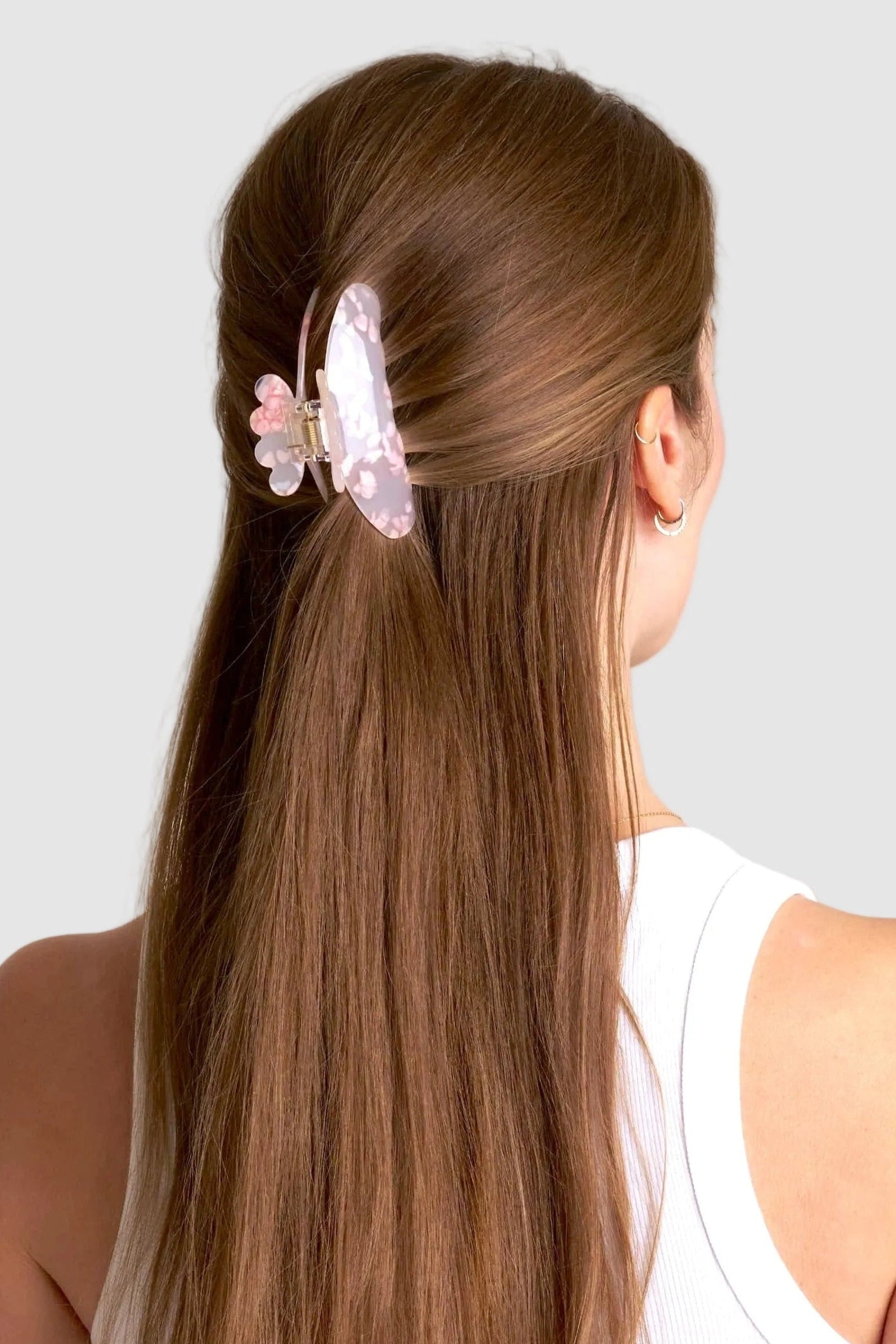 En hårklämma i mediumstorlek med vågformad design och rundade kanter – mjuk både i känsla och uttryck. Perfekt när du vill få undan håret snabbt och enkelt, men ändå behålla en lätt och fin känsla. Passar lika bra till en halvuppsättning som till att samla ihop håret baktill.