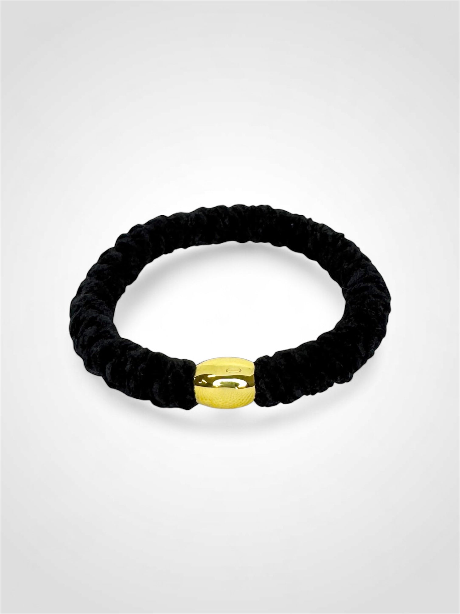 En underbart mjuk hårsnodd i sammet med guldfärgad pärla. Fin både i håret och runt handleden, som en liten detalj som gör mer än man tror. Den här snodden är mjuk, följsam och riktigt elastisk – utformad för att sitta bekvämt hela dagen utan att tappa formen.