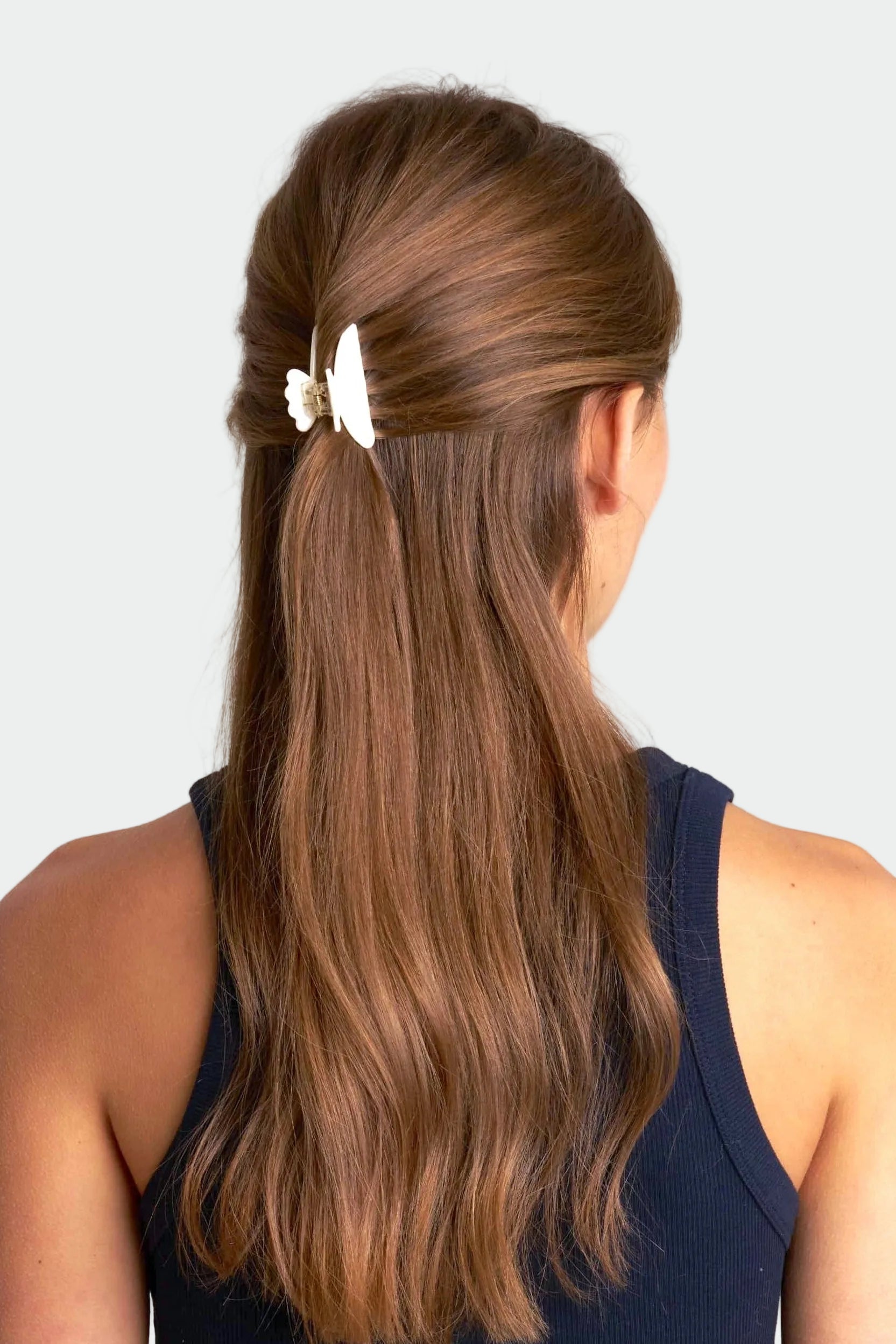 Du vet den där lilla klämman man alltid vill ha nära? Här är just en sån – en liten hårklämma som är perfekt för en enkel halvuppsättning.