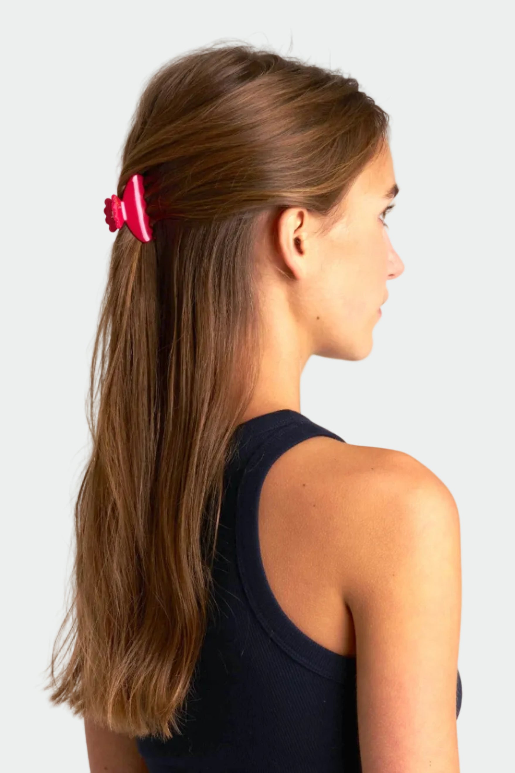 Du vet den där lilla klämman man alltid vill ha nära? Här är just en sån – en liten hårklämma som är perfekt för en enkel halvuppsättning.