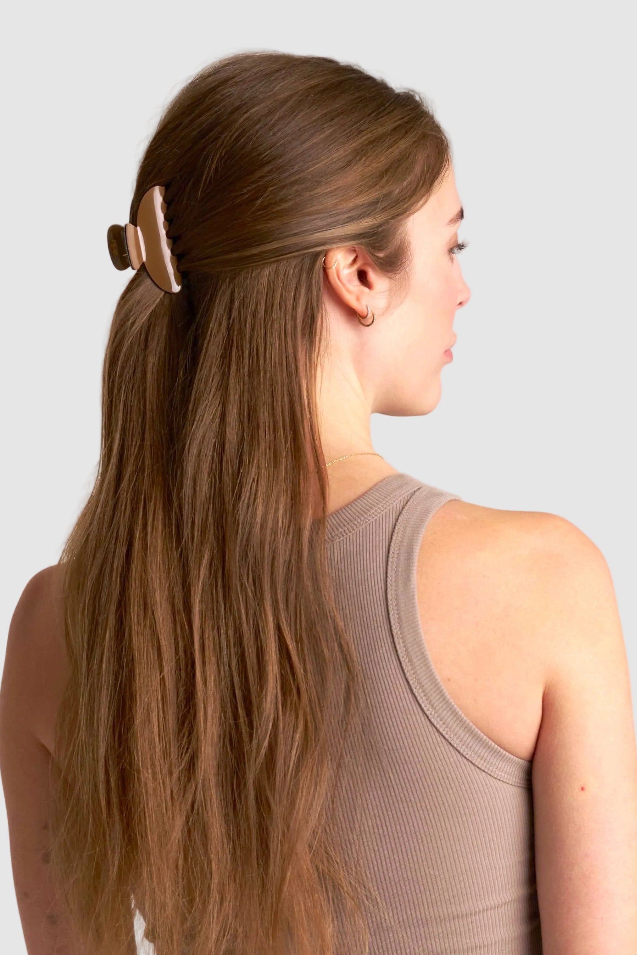 En hårklämma med glansig finish – stilren, smidig och enkel att använda. Perfekt för halvuppsättningar. En håraccessoar att ha nära till hands när du vill få upp håret utan krångel, men ändå känna dig lite extra fin.