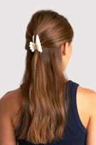 Du vet den där lilla klämman man alltid sträcker sig efter. Den som passar till allt och både räddar en dålig hårdag och lyfter en vanlig tisdag. Det här är just den – en liten vit hårklämma, perfekt att använda till en enkel halvuppsättning.