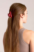 Du vet den där lilla klämman man alltid sträcker sig efter. Den som både räddar en dålig hårdag och lyfter en vanlig tisdag. Det här är just den – en liten röd hårklämma, perfekt att använda till en enkel halvuppsättning.