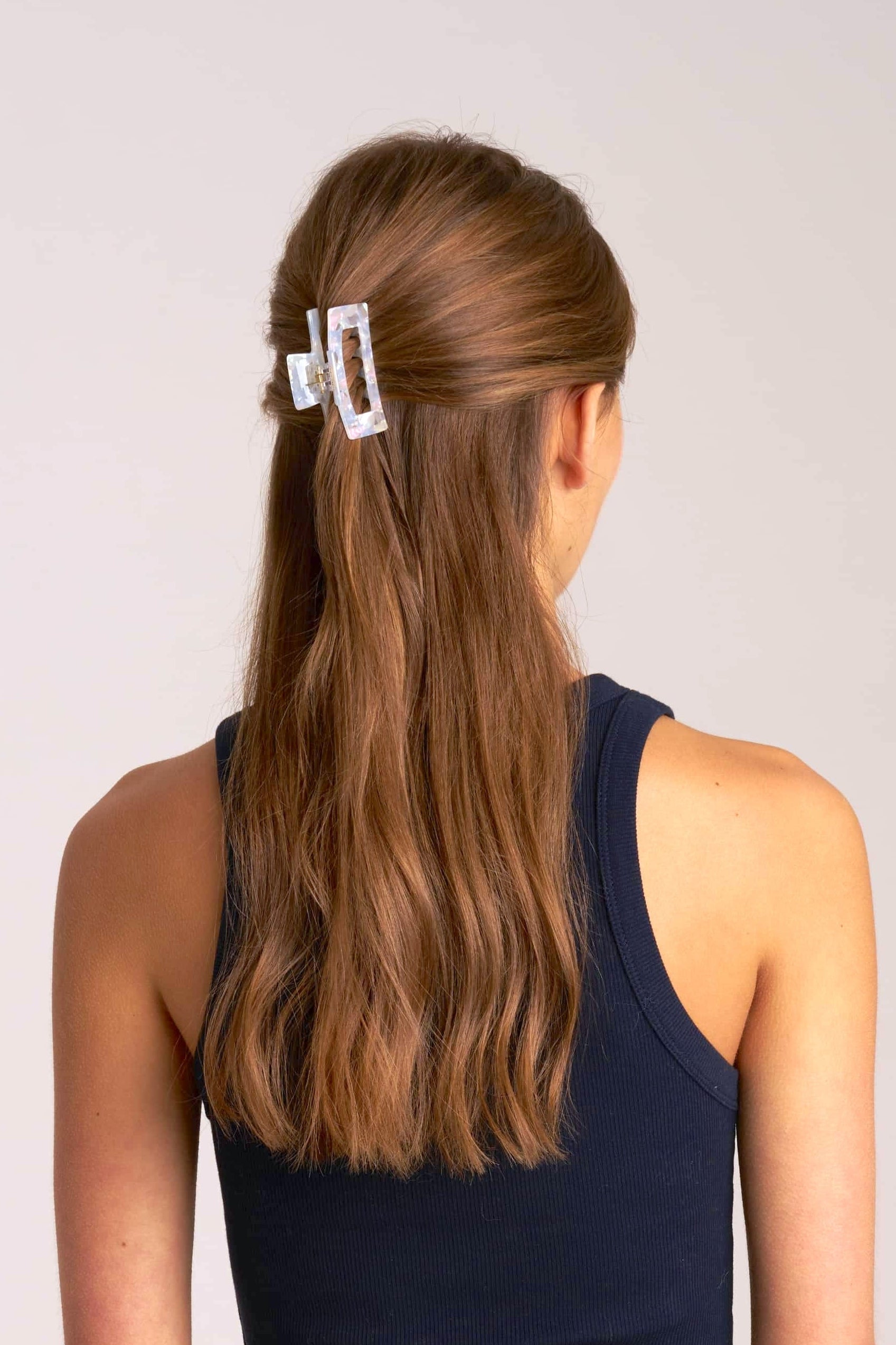 En liten hårklämma med glansig finish – stilren, smidig och enkel att använda. Perfekt för halvuppsättningar eller för att samla mindre sektioner av håret på ett snabbt och fint sätt.