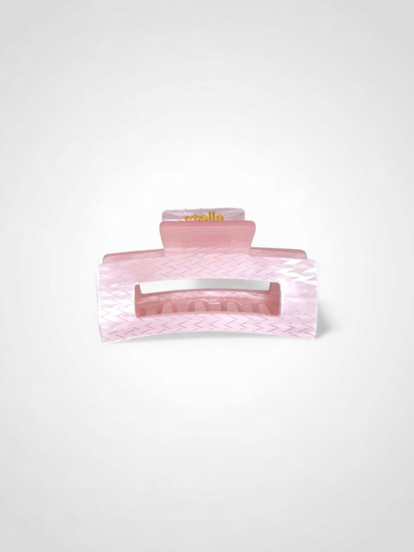 En liten rosa hårklämma med glansig finish – stilren, smidig och enkel att använda. Perfekt för halvuppsättningar eller för att samla mindre sektioner av håret på ett snabbt och fint sätt.