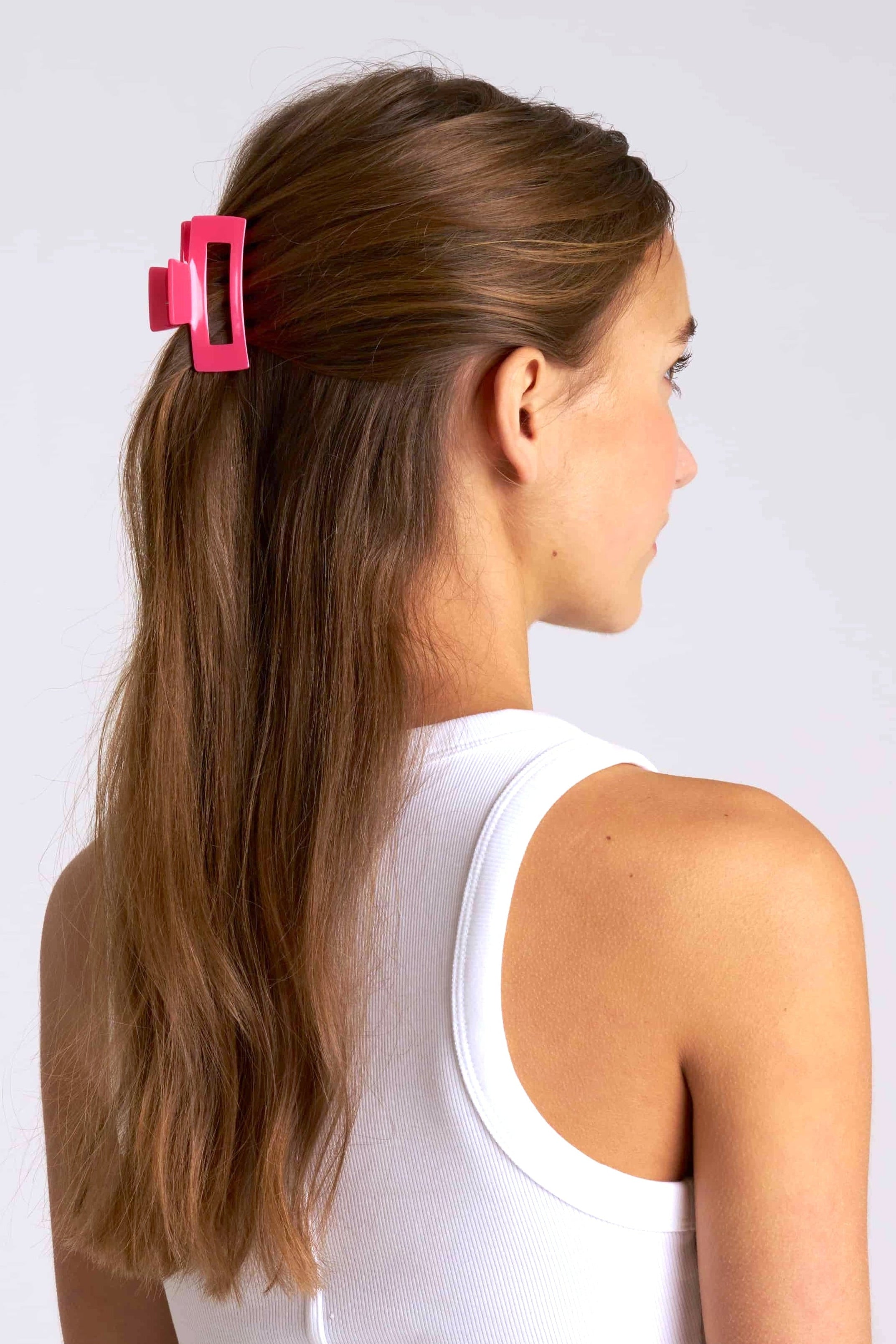En liten hårklämma med glansig finish. Stilren, smidig och enkel att använda. Perfekt för halvuppsättningar eller för att samla mindre sektioner av håret på ett snabbt och fint sätt.