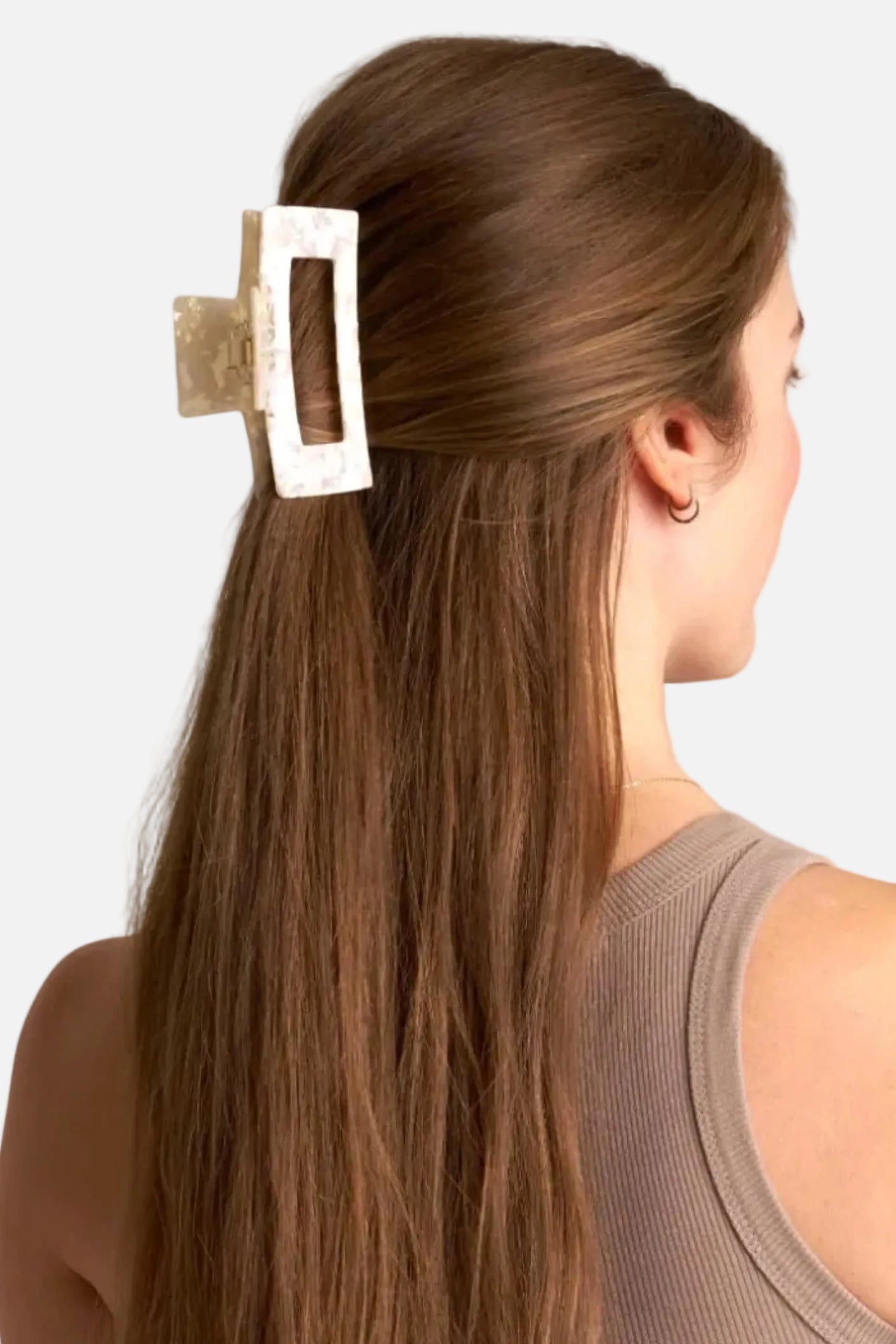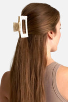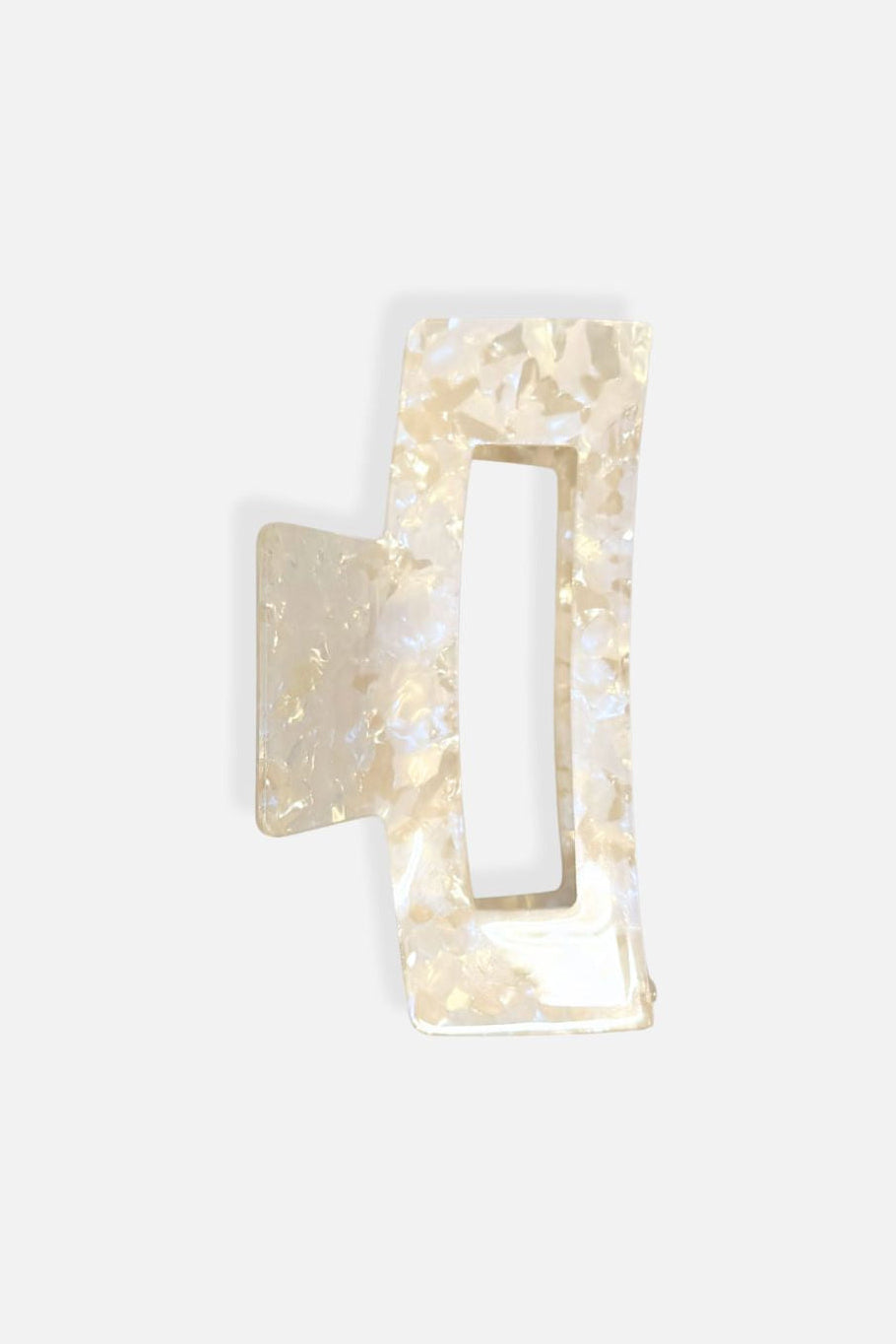 En stor hårklämma i en mjuk champagnefärg med glansig finish – elegant, enkel och stilren. Formen är klassisk och följsam, med ett stadigt grepp som håller håret på plats.